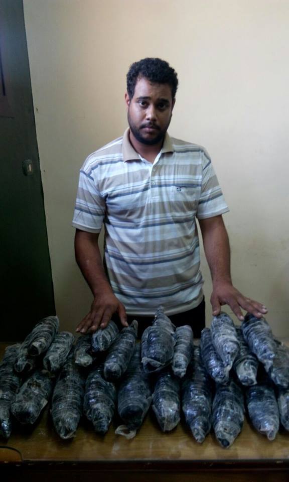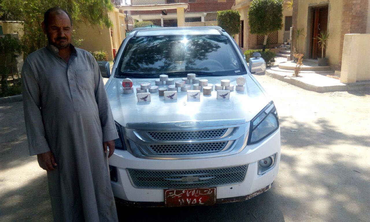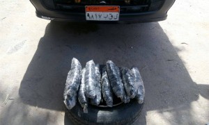 بعدد (6) جوال بداخلهم عدد (199) قطعة لجوهر الحشيش بإجمالى وزن (51800) كجم وعدد (2) تمثال حجرى أثرى وعدد (1) بندقية خرطوش