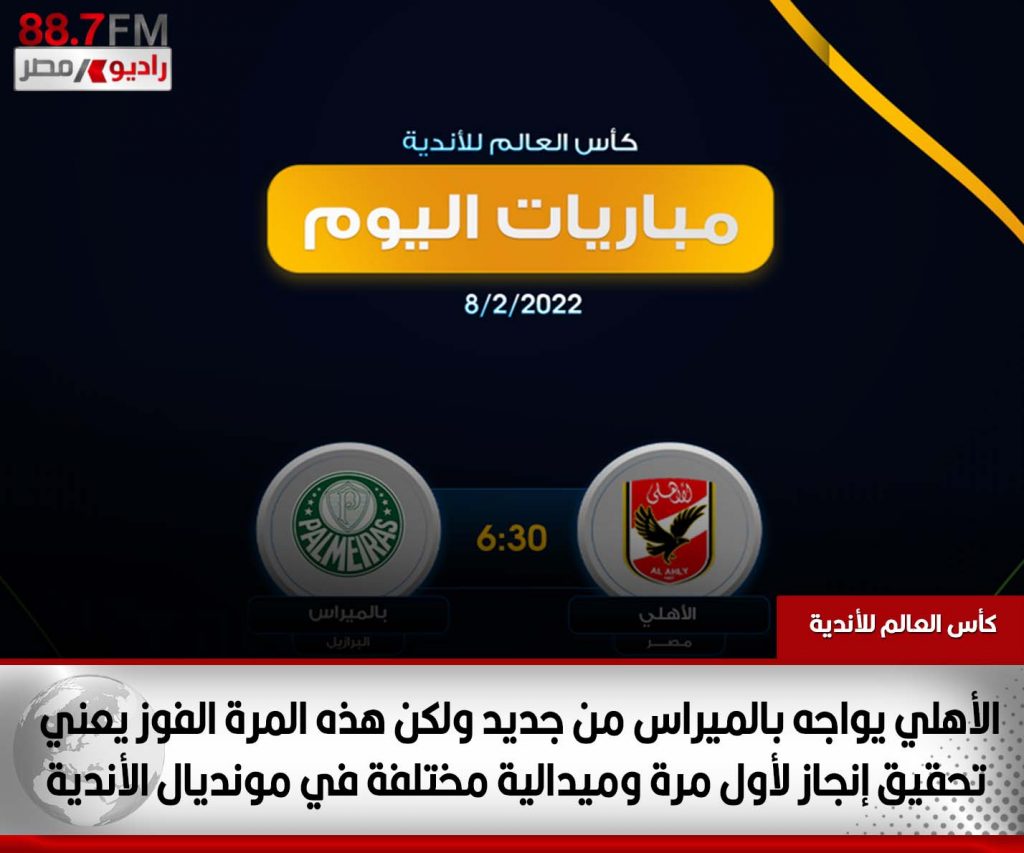 بعد نجاحه في تحقيق مفاجأة مدوية في ربع نهائي كأس العالم للأندية والفوز على مونتيري المكسيكي (1-0) بالفريق الثاني مع استثناءات قليلة، يخوض النادي الأهلي نصف النهائي ضد بالميراس البرازيلي.