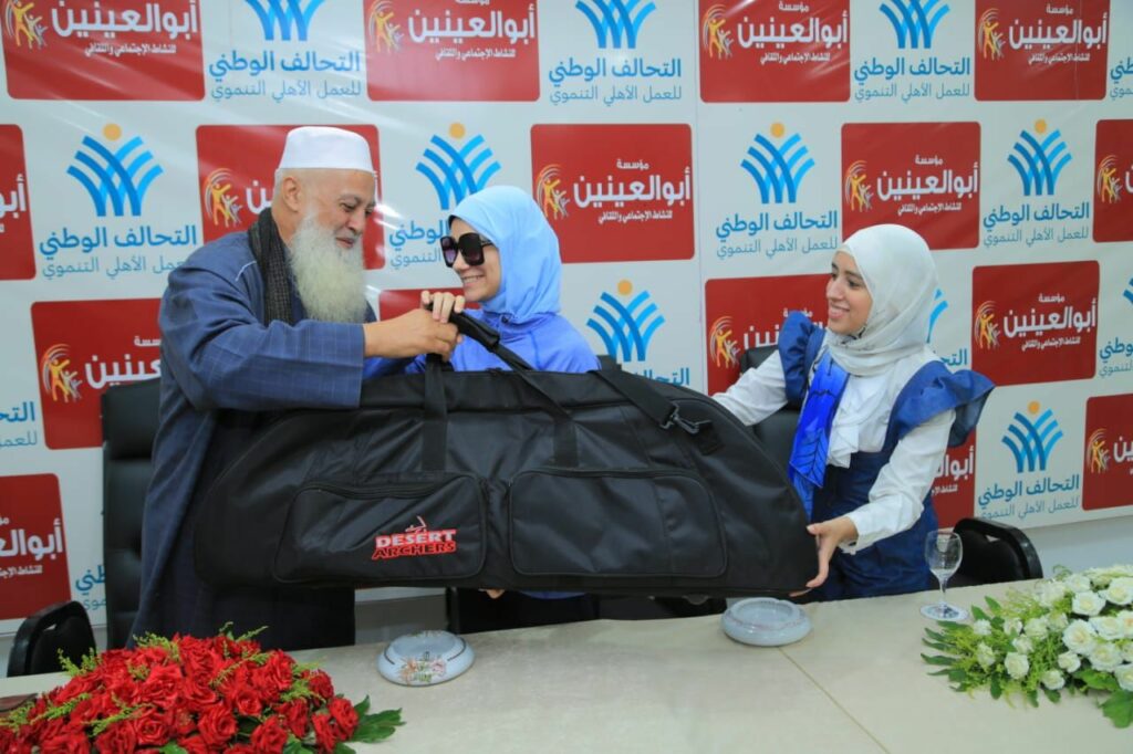 وفي محافظة الجيزة قامت مؤسسة أبوالعنين بتكريم بطلة القوس والرمح الكفيفة منه الله عصام وتسليمها جميع الادوات الرياضية الخاصة باللعبة وقد سبق تكريم البطلة من الرئيس السيسي علي انجازاتها الرياضية حيث حصدت علي مدار تاريخها الرياضي 12 ميدالية ذهبية.