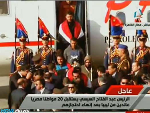 استقبل الرئيس عبد الفتاح السيسي اليوم عشرين مصرياً عائدين من ليبيا بعد تحريرهم من الاختطاف من قبل إحدى الجماعات الإرهابية.