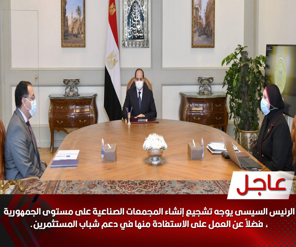 الرئيس السيسى يوجه تشجيع إنشاء المجمعات الصناعية على مستوى الجمهورية ودعم شباب المستثمرين.