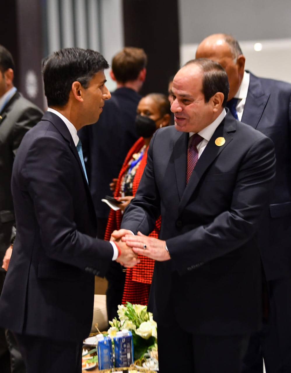 من جانبه؛ أعرب رئيس الوزراء البريطاني عن تقديره للتنظيم الناجح والمتميز للقمة العالمية للمناخ من قبل مصر، مثمناً الروابط الوثيقة بين مصر وبريطانيا، والزخم غير المسبوق الذي شهدته العلاقات بين البلدين على مدار السنوات الماضية، لاسيما على صعيد العلاقات الاقتصادية والتجارية، ومؤكداً أن مصر تعد أحد أهم شركاء بريطانيا بالشرق الأوسط في ظل ما تمثله من ركيزة أساسية للاستقرار والأمن بالمنطقة.