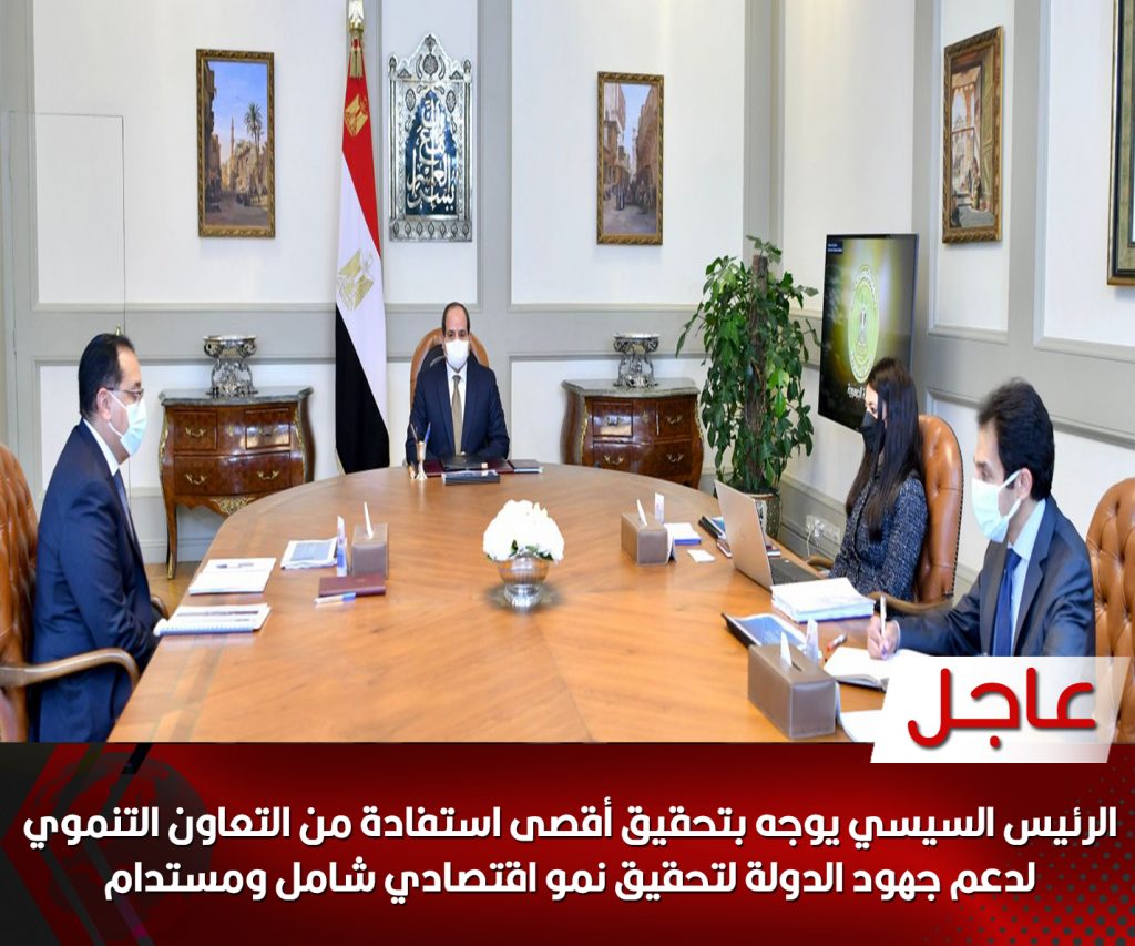 الرئيس السيسي يوجه بتحقيق أقصى استفادة من التعاون التنموي لدعم جهود الدولة لتحقيق نمو اقتصادي شامل ومستدام