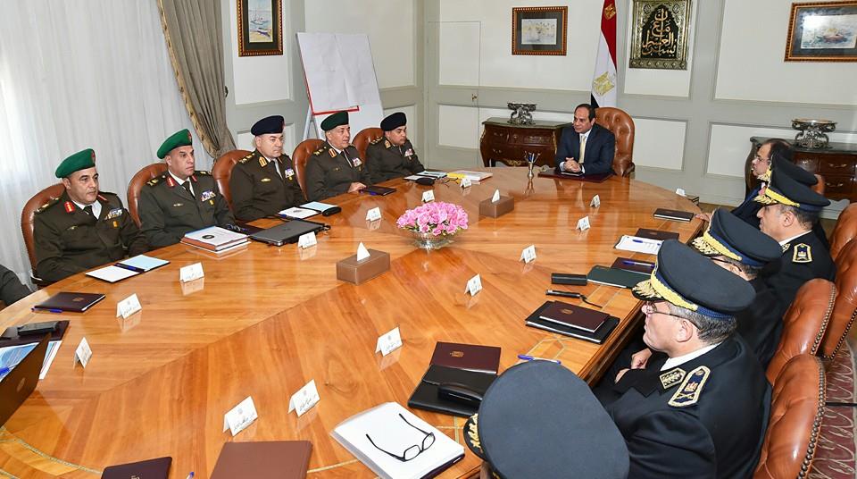 الرئيس يجتمع بوزيرى الدفاع والداخلية وعدد من كبار قادة القوات المسلحة والشرطة