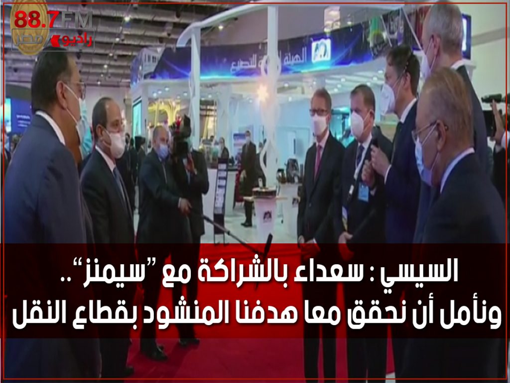 رحب الرئيس عبد الفتاح السيسي، بمسؤولي شركة سيمنز خلال تفقده أجنحة معرض ومؤتمر النقل الذكى واللوجيستيات والتحول للنقل الأخضر.