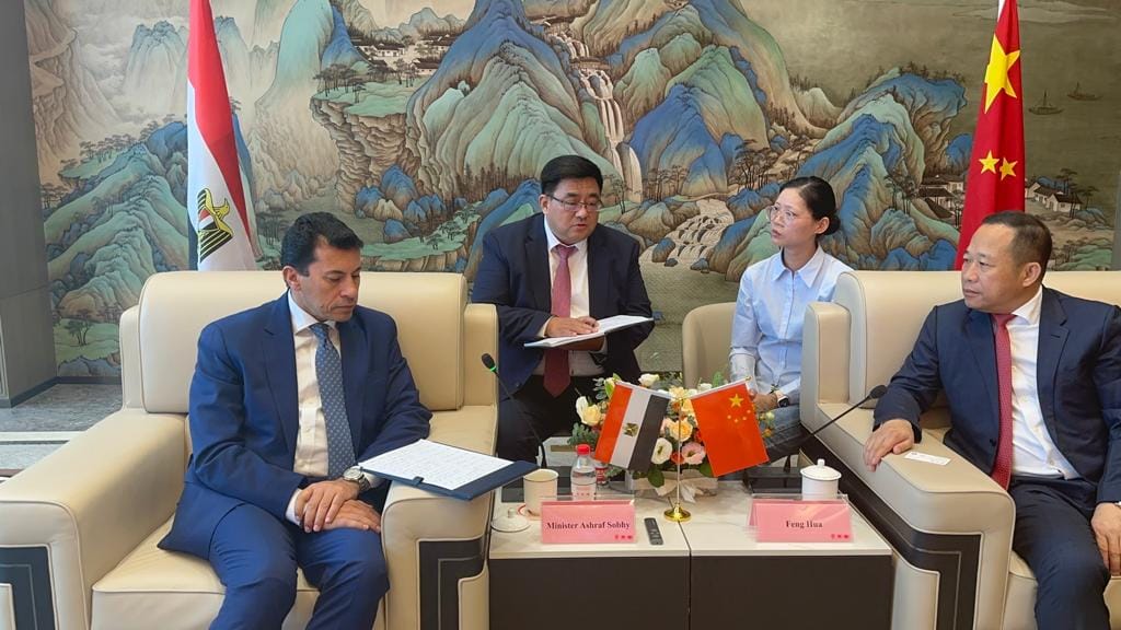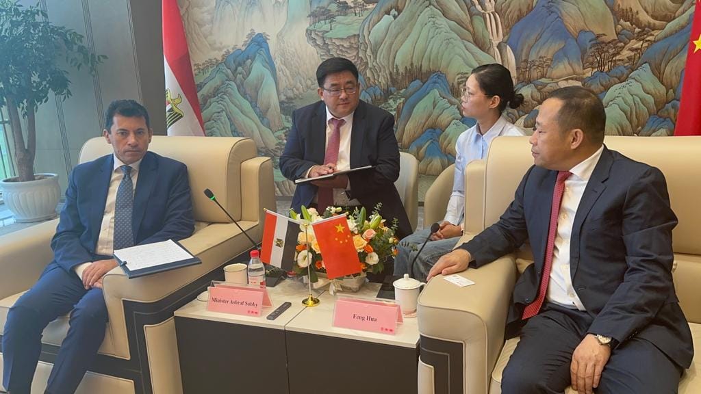ألتقي وزير الشباب والرياضة الدكتور أشرف صبحي، برئيس شركة دافينج الصينية؛ لبحث أطر التعاون المشترك وتبادل الخبرات والتجارب الصينية المصرية في مجال التصنيع الرياضي، وذلك خلال جولة الوزير التفقدية للعدد من المصانع والشركات ذات الشأن في التصنيع الرياضي بالصين.