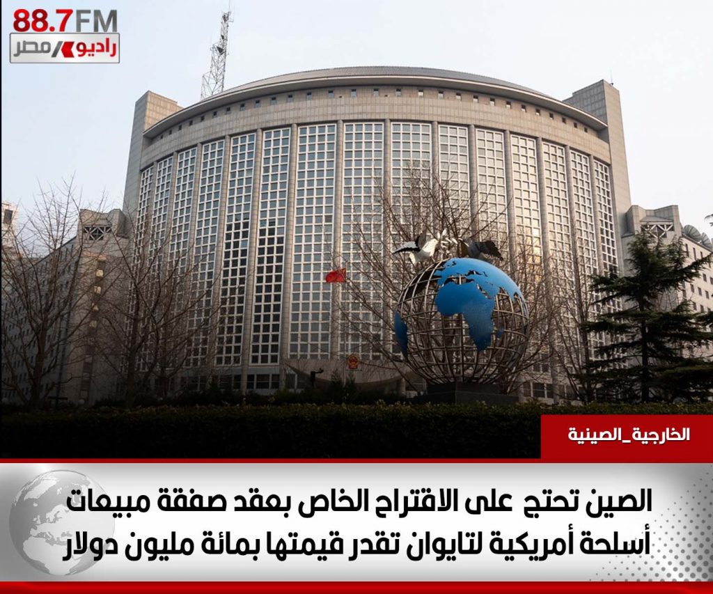 أعربت #وزارة_الخارجية_الصينية اليوم عن احتجاج الصين على الاقتراح الخاص بعقد صفقة مبيعات أسلحة أمريكية لتايوان تقدر قيمتها بمائة مليون دولار . وقال المتحدث باسم وزارة الخارجية الصينية تشاو ليجيان ” إن الصين تحتج بشدة على هذا الاجراء وتدينه بقوة ” . وأضاف المتحدث قائلا فى تصريحات صحفية ” يتعين على الولايات المتحدة أن تسحب هذا الاقتراح فورا ” .