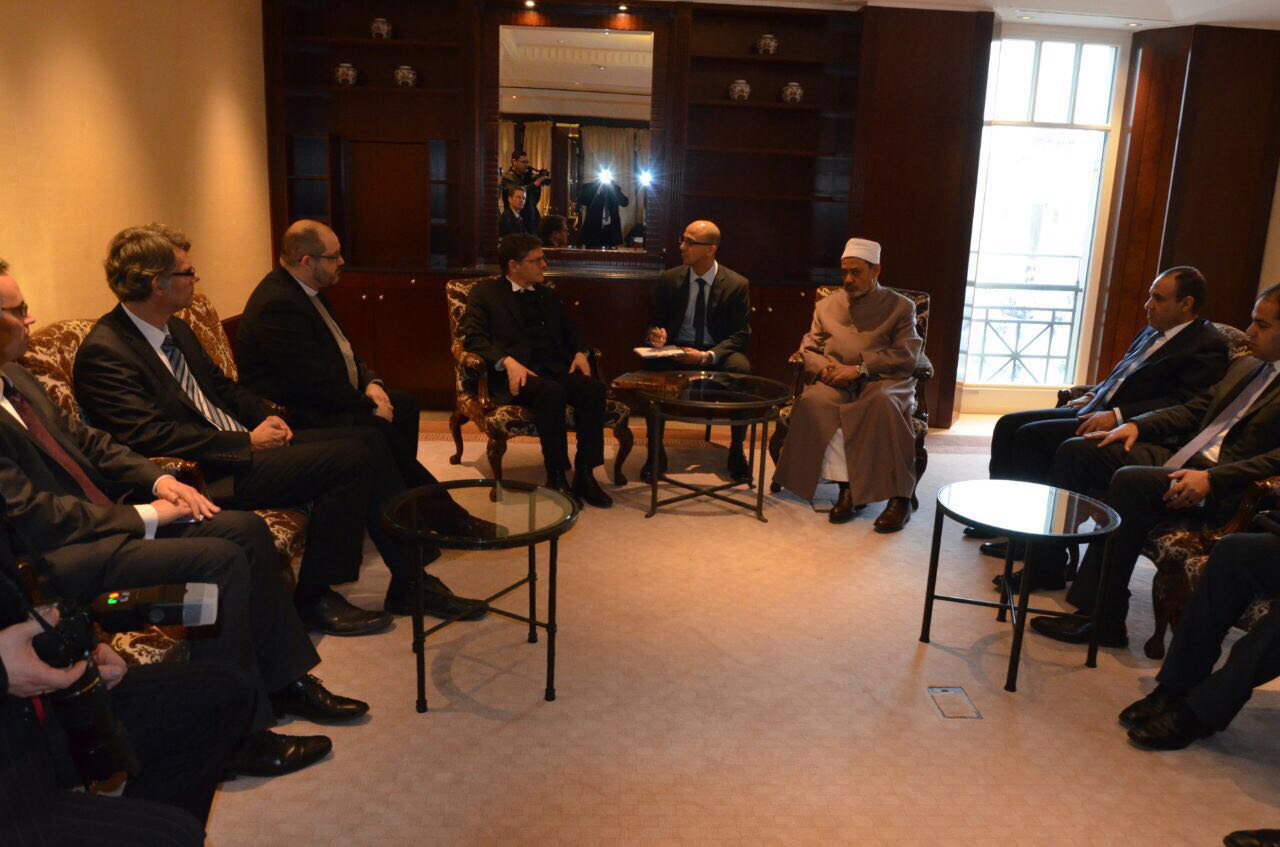 التقى فضيلة الإمام الأكبر أ.د أحمد الطيب شيخ الأزهر الشريف وبراندينبورج ماركوس دروجه أسقف الكنيسة الإنجيلية في برلين.