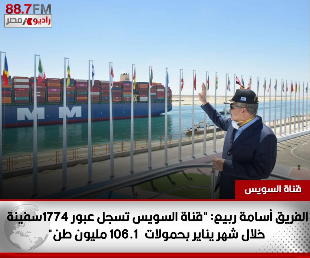 الفريق أسامة ربيع: “قناة السويس تسجل عبور 1774سفينة خلال شهر يناير بحمولات 106.1 مليون طن”