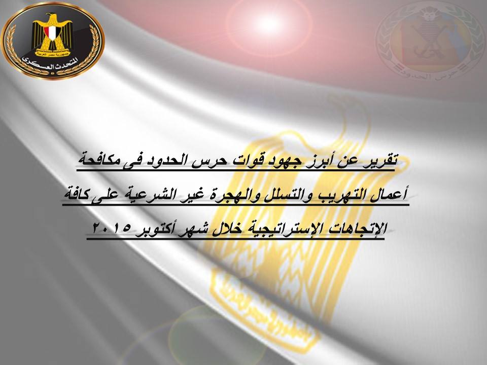 القوات المسلحة : تقرير عن أبرز جهودقوات حرس الحدود فى مكافحة أعمال التهريب والتسلل والهجرة غير الشرعية خلال شهر أكتوبر 2015