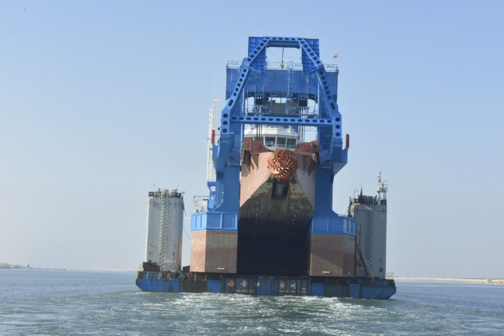 الكراكة “حسين طنطاوي” تصل قناة السويس محمولة على سفينة الغطس “Tai An Kou” وذلك استعداداً للانضمامها لأسطول الهيئة تمهيداً لاحتفالية مراسم رفع العلم عليها