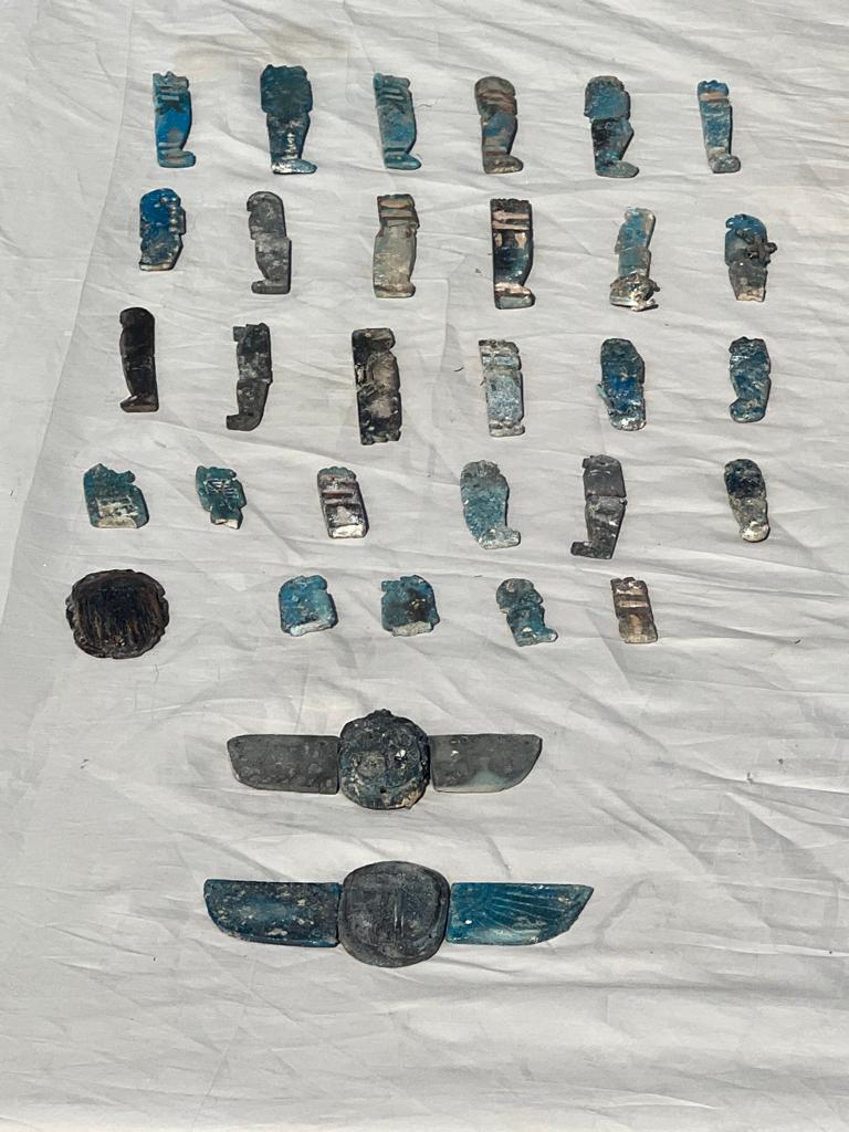 وأشار الدكتور فتحي ياسين مدير عام آثر مصر العليا، أن البعثة عثرت أيضا على مبنى من الطوب اللبن كان مخصصا لتقديم القرابين بداخله مجموعة من تماثيل الأوشابتي المطلية باللون الأبيض وعليها كتابات بالمداد الأسود بالخط الهيراطيقي، ومجموعة كبيرة من التمائم مصنوعة من الفيانس ذات أشكال مختلفة مثل الجعران وأبناء حورس وكمية كبيرة من الخرز، بالإضافة إلى المئات من الأختام الجنايزية الغير منقوشة والتي تُميز الفترة التي تسبق عصر الدولة الحديثة.