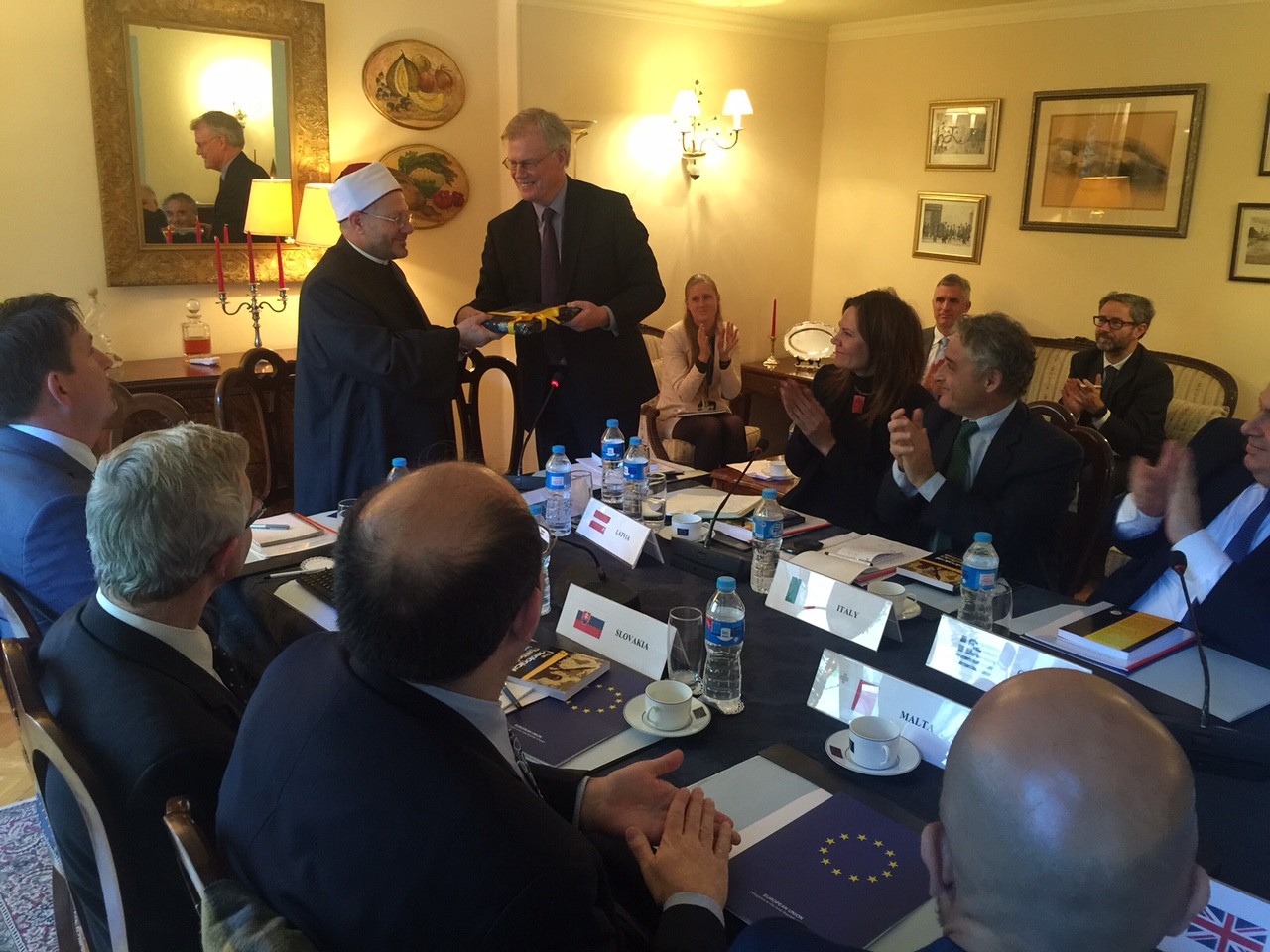 التقى الدكتور شوقي علام، مفتي الجمهورية، اليوم الخميس، سفراء دول الاتحاد الأوروبي في مصر للتشاور معهم حول سبل تعزيز التعاون من أجل مواجهة التطرف والإرهاب وتقديم الدعم الشرعي اللازم للمسلمين في دول الاتحاد.