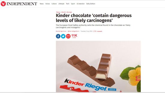 الوكالة الألمانية لسلامة الغذاء: شيكولاتة كيندر تحتوى على مواد مسرطنة