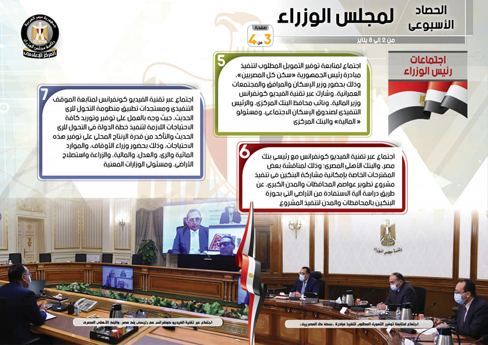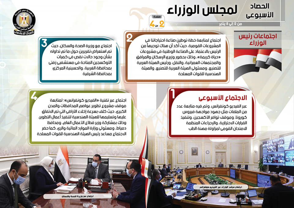 بالإنفوجراف.. الحصاد الأسبوعي لمجلس الوزراء خلال الفترة من 2 يناير إلى 8 يناير