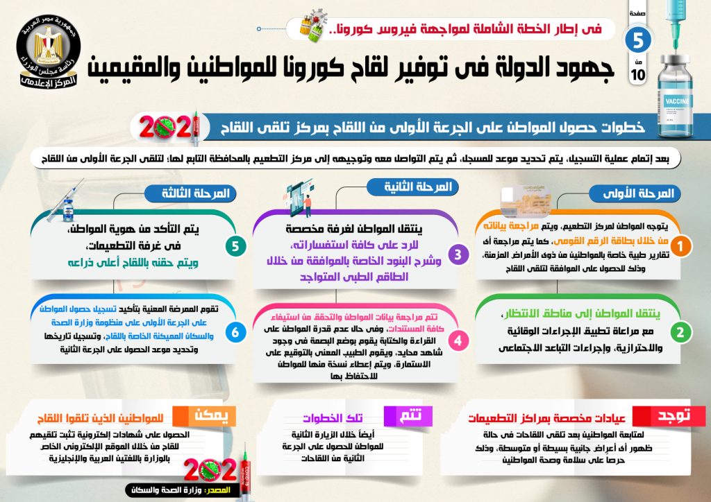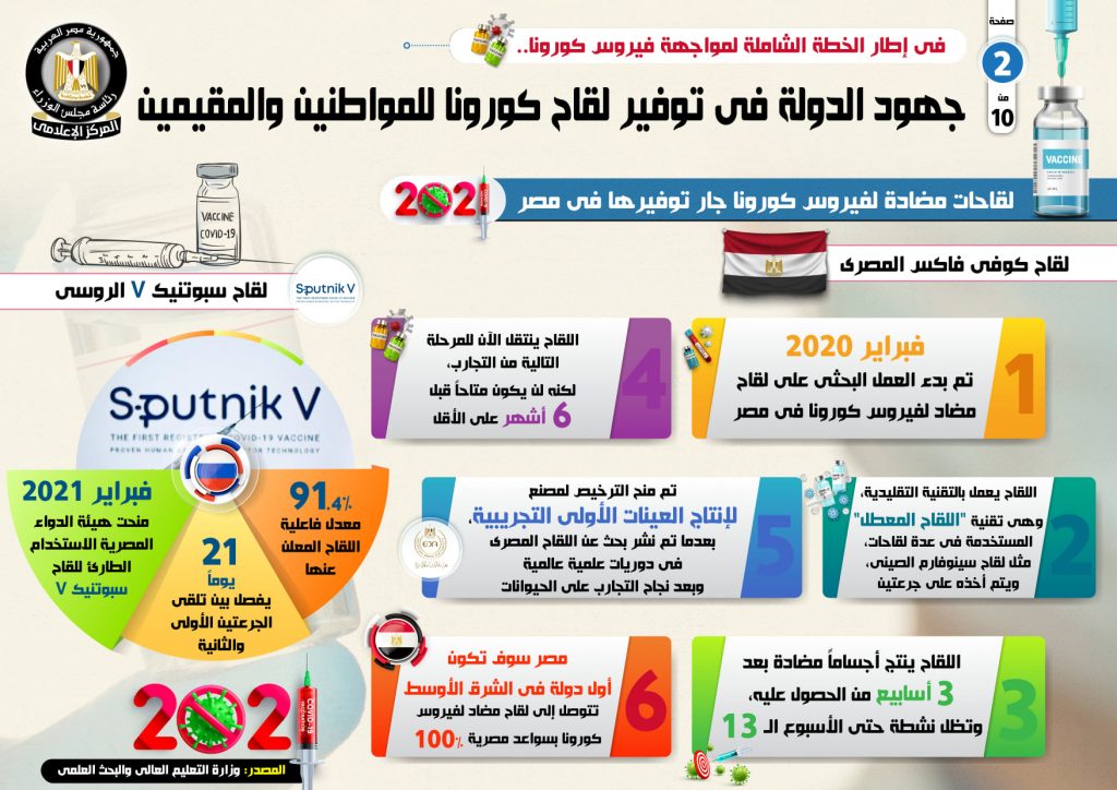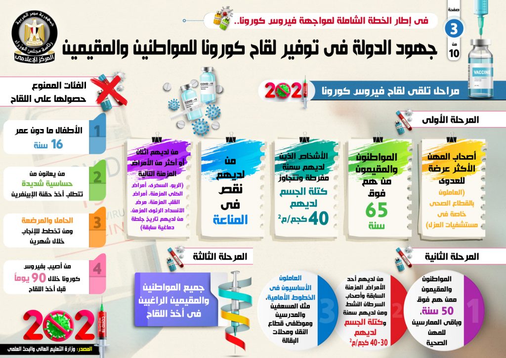 في إطار الخطة الشاملة لمواجهة فيروس كورونا.. بالإنفو جراف… جهود الدولة في توفير لقاح كورونا للمواطنين والمقيمين بذلت…