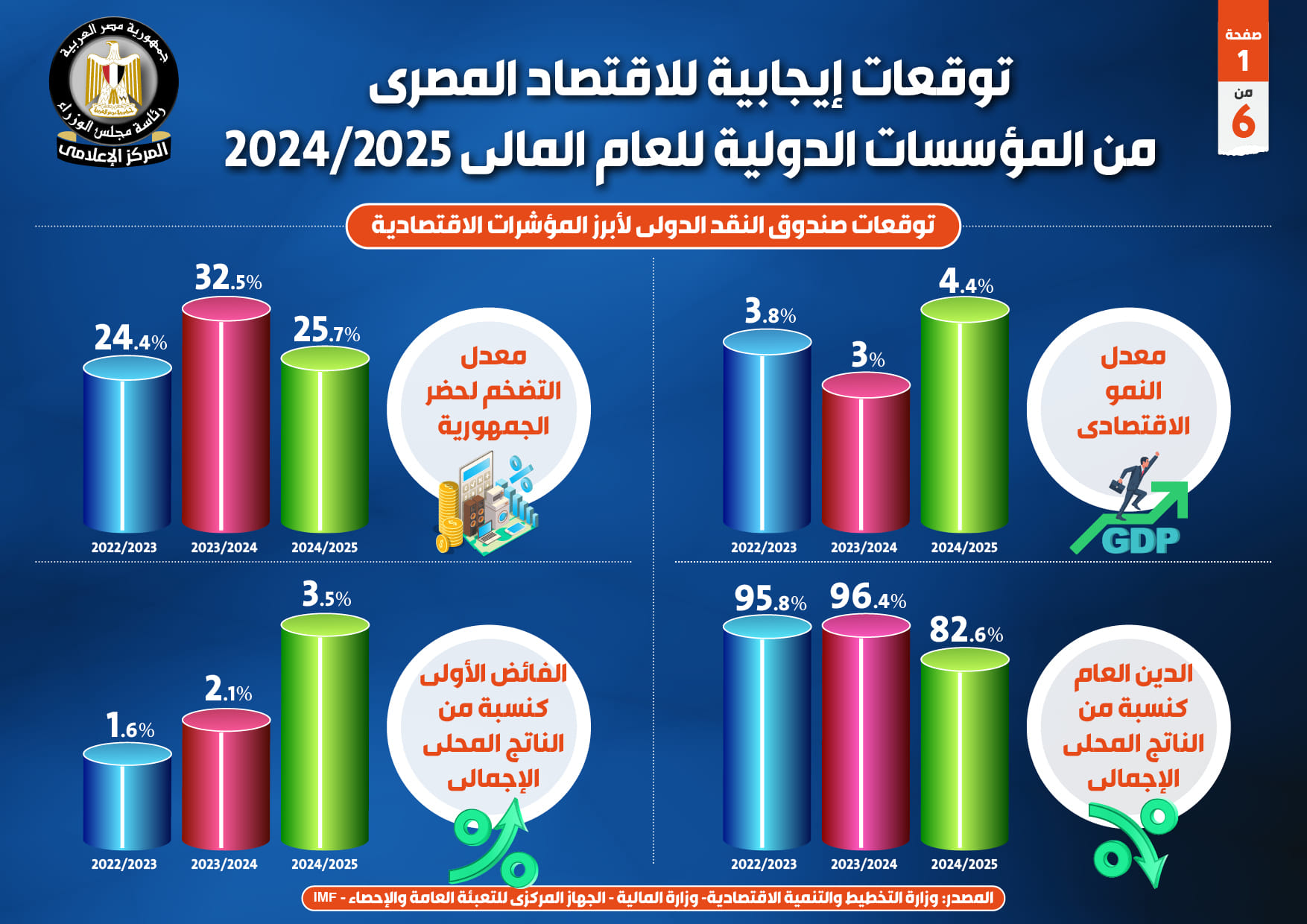 بالإنفوجراف.. مجلس الوزراء: توقعات إيجابية للاقتصاد المصري من المؤسسات الدولية للعام المالي 2024/ 2025