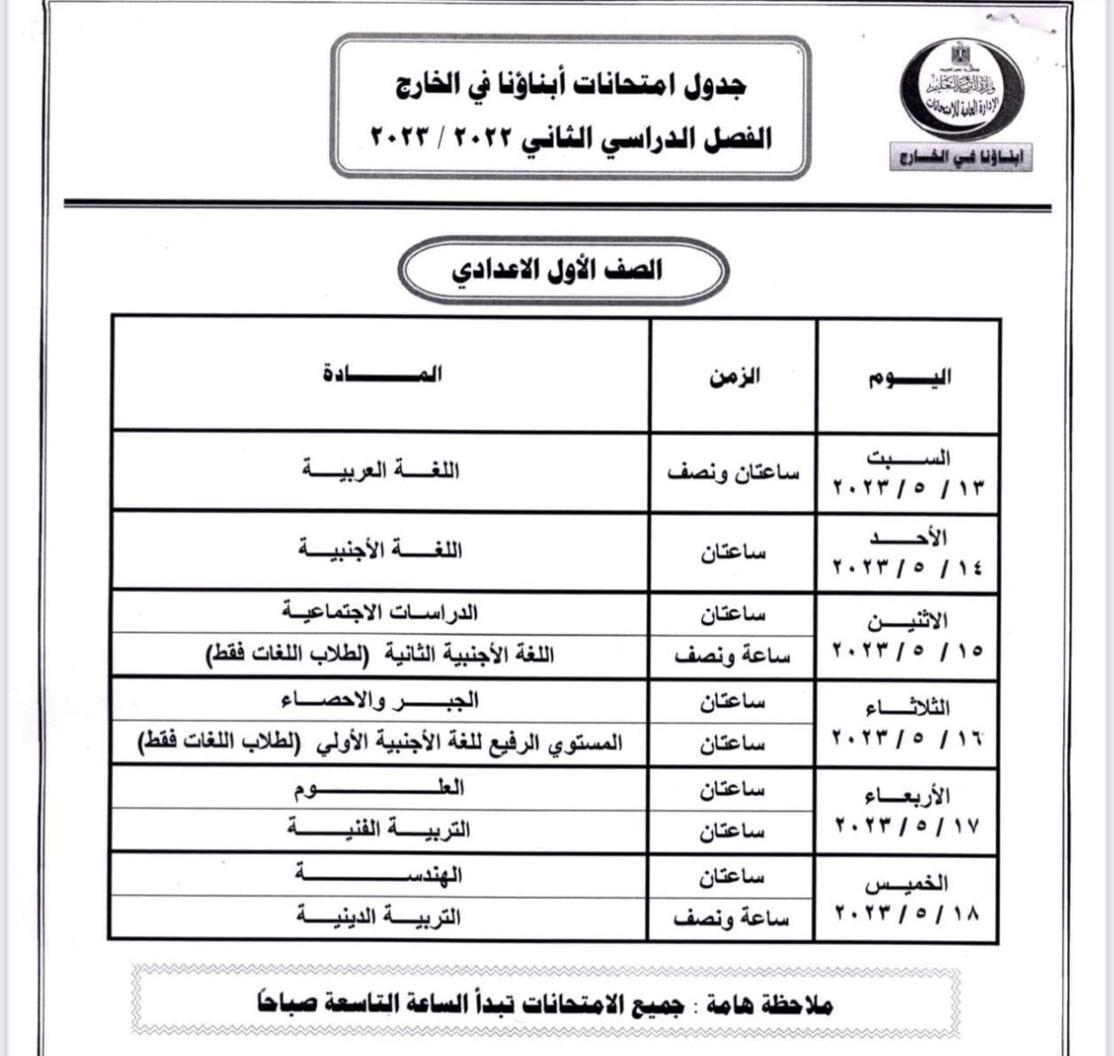 بالصور.. التعليم تعلن جداول امتحانات أبناؤنا في الخارج والدخول عبر المنصة الإلكترونية