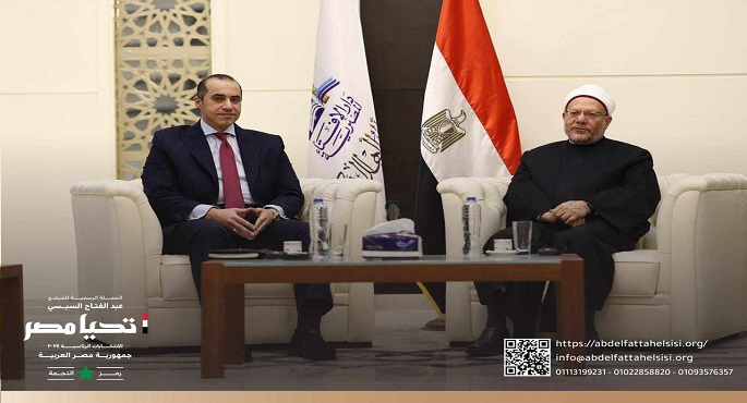 بالصور.. الحملة الرسمية للمرشح الرئاسي عبد الفتاح السيسي تلتقي مفتي الديار المصرية بدار الإفتاء