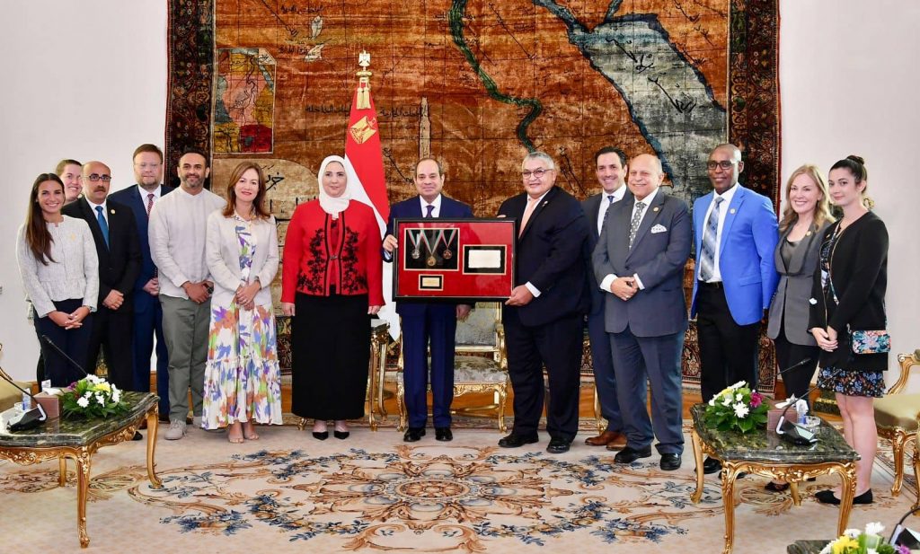 بالصور.. الرئاسة: اللجنة الدولية للاولمبياد الخاص الدولى تهدي الرئيس السيسي جائزتها الدولية