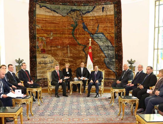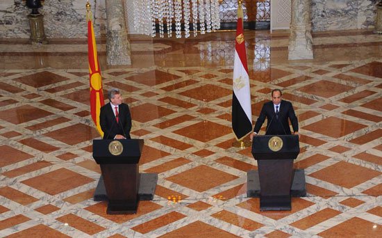 استقبل الرئيس عبد الفتاح السيسي، ظهر اليوم، الأحد، الرئيس المقدونى جورجى إيفانوف الذى يقوم بزيارة رسمية لمصر. وعقب المباحثات تحدث الرئيسان إلى وسائل الإعلام، بمقر رئاسة الجمهورية بمصر الجديدة. وأعرب الرئيس المقدونى عن ترحيبه بـتوقيع بروتوكول تعاون فى مجال الزراعة بين حكومتى البلدين، لتعزيز التعاون، والتأكيد على العمل الجاد.