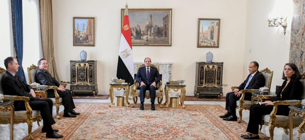 جاء ذلك خلال استقبال الرئيس السيسي، خوسيه مانويل ألباريس وزير الخارجية والاتحاد الأوروبي والتعاون الإسباني، والوفد المرافق له، وذلك بحضور بدر عبد العاطي وزير الخارجية والهجرة وشئون المصريين في الخارج، بالإضافة إلى سفير إسبانيا بالقاهرة.