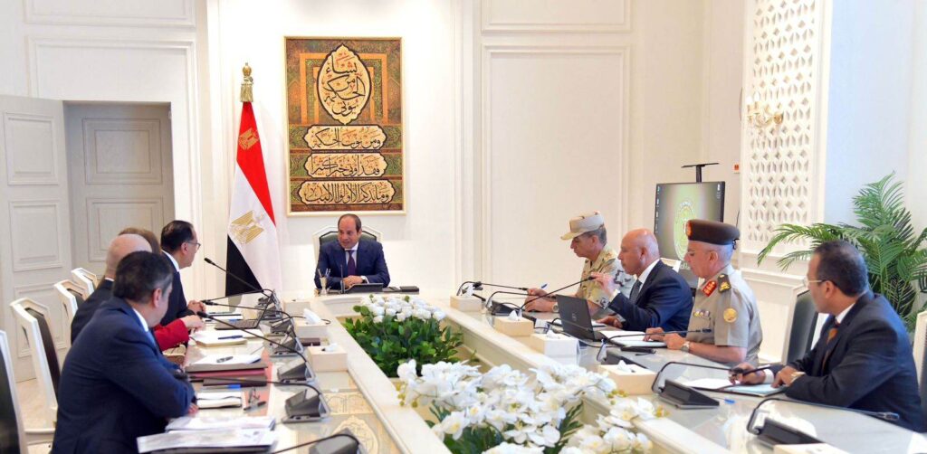 عقد الرئيس عبد الفتاح السيسي اليوم الخميس اجتماعا بمقر القيادة الاستراتيجية في العاصمة الإدارية الجديدة، مع كل من مصطفى مدبولي رئيس مجلس الوزراء، والفريق أول محمد زكي وزير الدفاع والإنتاج الحربي، وهالة السعيد وزيرة التخطيط والتنمية الاقتصادية، وعاصم الجزار وزير الإسكان والمرافق والمجتمعات العمرانية، والفريق كامل الوزير وزير النقل، واللواء أحمد العزازي رئيس الهيئة الهندسية للقوات المسلحة، والمهندس خالد عباس رئيس مجلس إدارة شركة العاصمة الإدارية الجديدة.