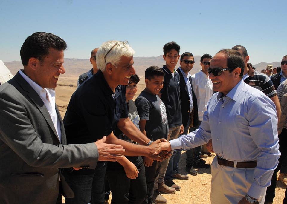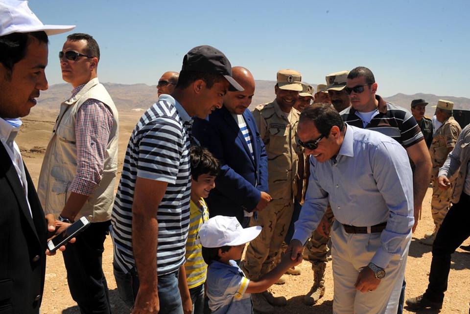 وقد التقى السيد الرئيس بعددٍ من أهالي سيناء العاملين فى هذه المشروعات واستمع إلى احتياجاتهم ومتطلباتهم، مؤكداً أن الدولة تضع نصب أعينها التنمية الشاملة في سيناء وكافة المناطق النائية والأولى بالرعاية مثل حلايب وشلاتين والمنطقة الغربية والنوبة. ووجَّه السيد الرئيس الشكر لأهالي سيناء على دورهم الوطني المشرف وتعاونهم البناء في مجال مكافحة الإرهاب في سيناء.