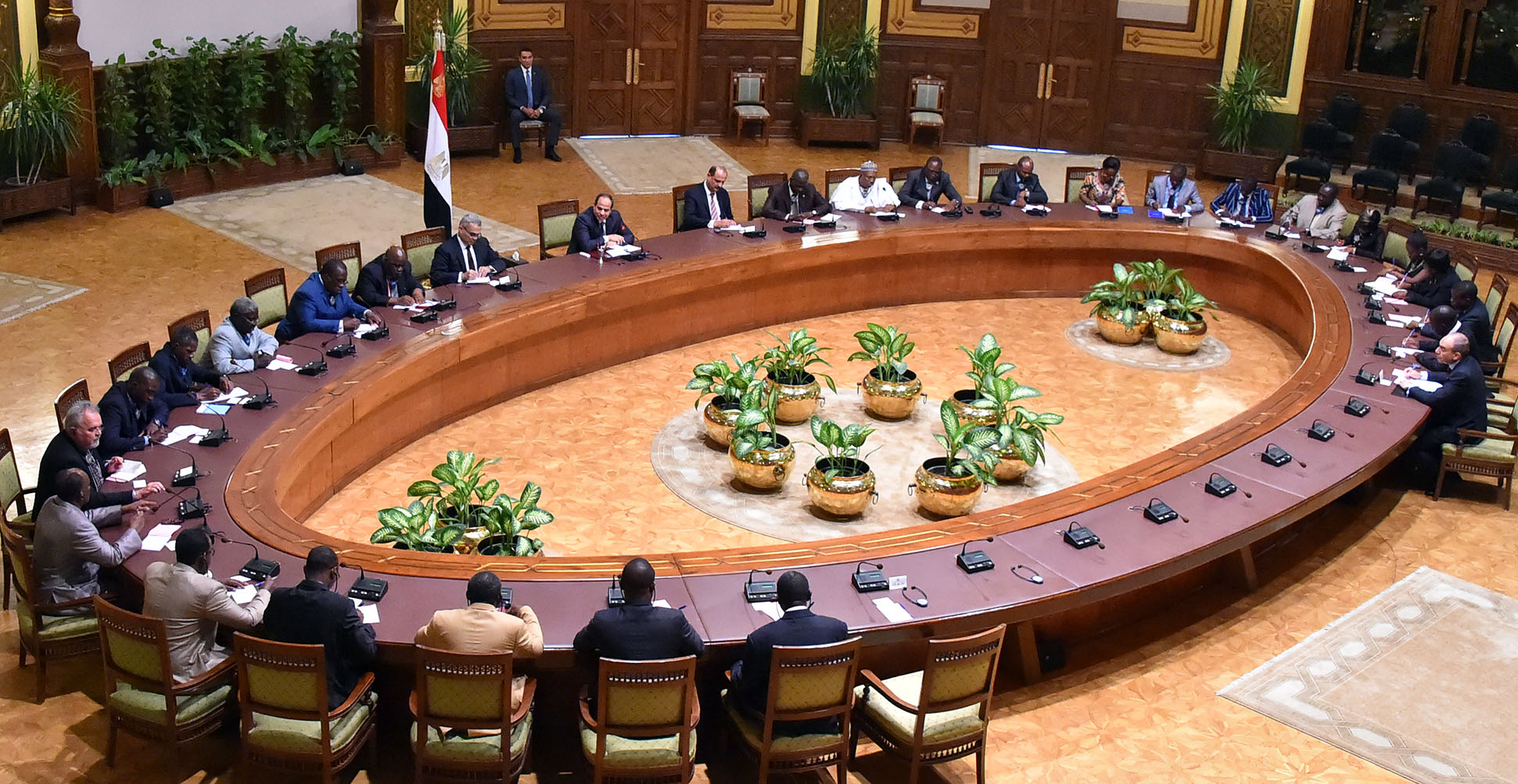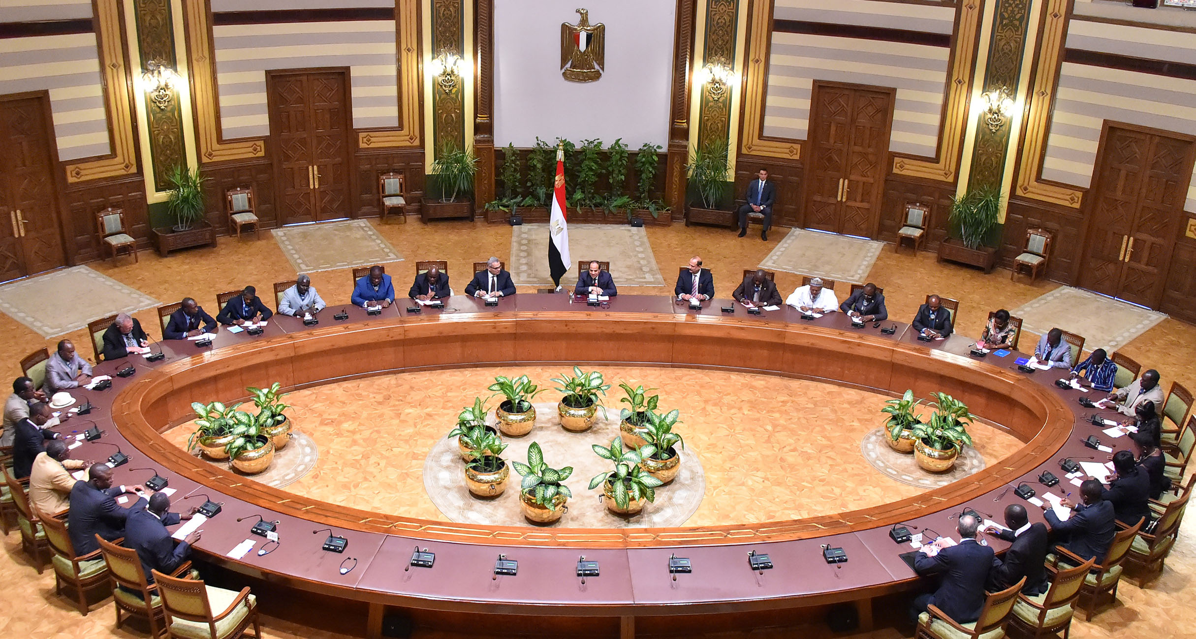 اِستقبل الرئيس عبد الفتاح السيسي اليوم وفداً من رؤساء تحرير الصحف الرئيسية في عدد من الدول الإفريقية، وذلك بحضور رئيس الهيئة العامة للاستعلامات، وأمين عام الوكالة المصرية للشراكة من أجل التنمية التابعة لوزارة الخارجية.