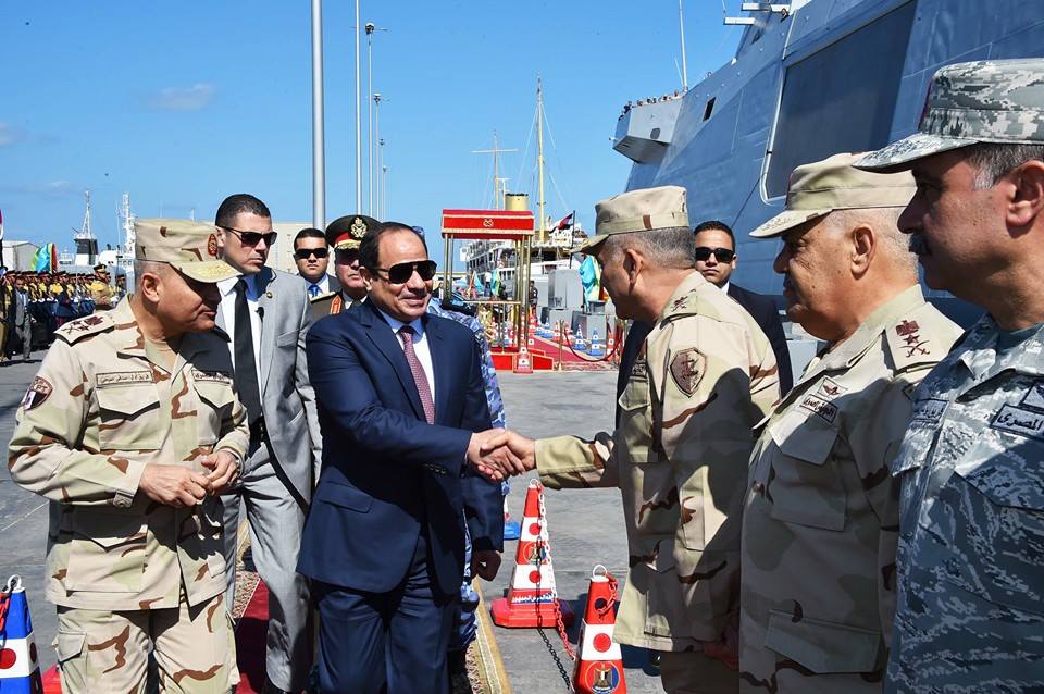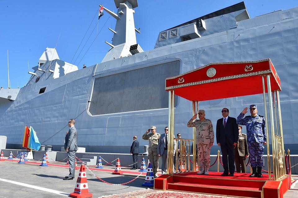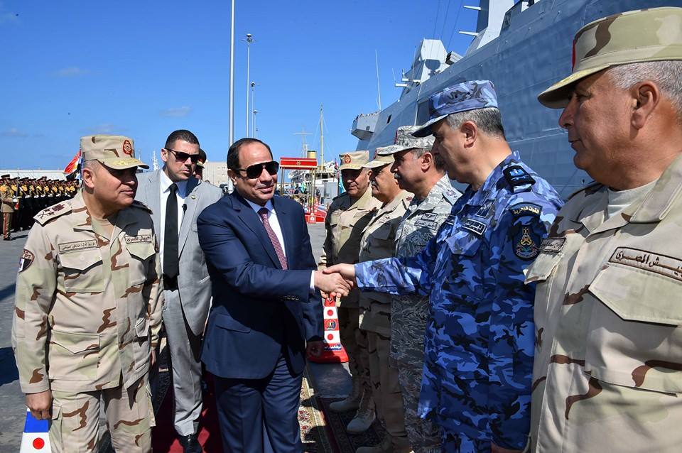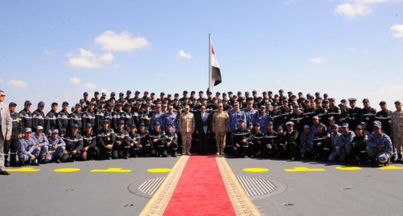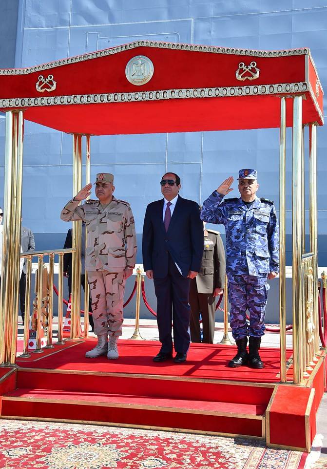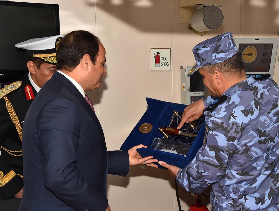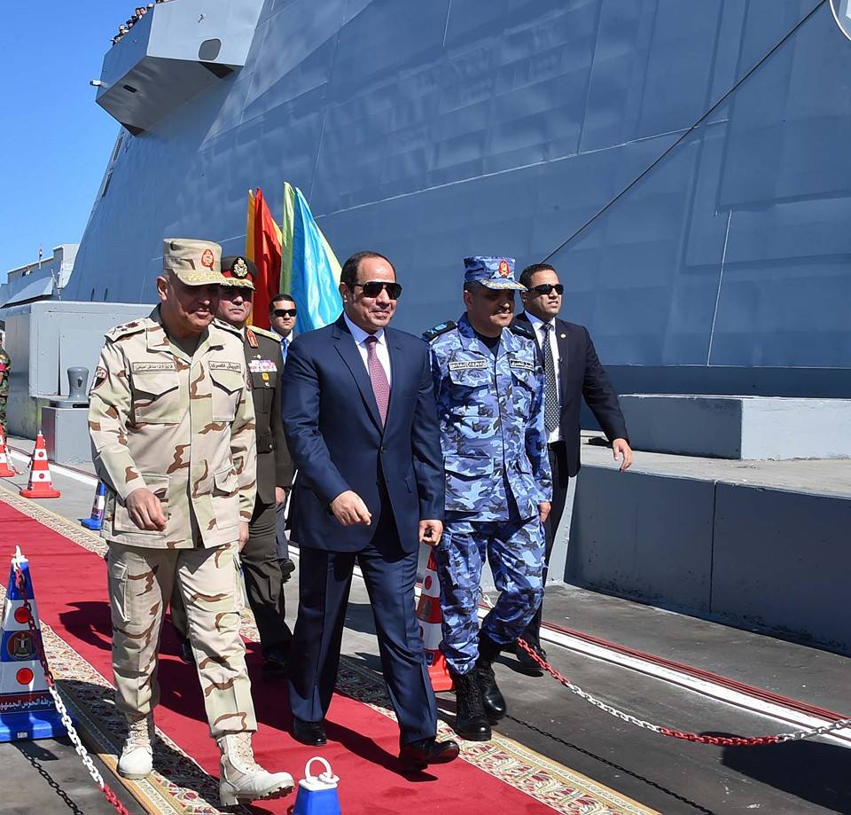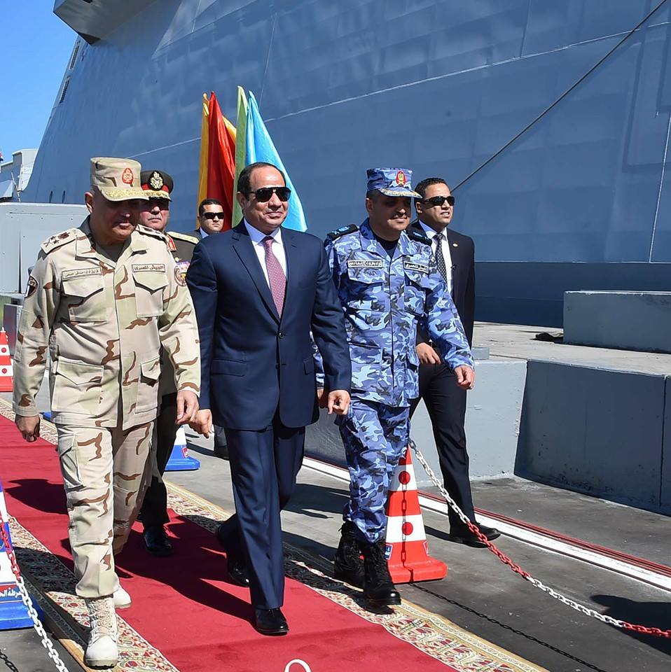 وقد قام السيد الرئيس فور وصوله برفع العلم المصري على الفرقاطة “تحيا مصر”؛ احتفالاً بانضمامها إلى القوات البحرية، واستعرض سيادته حرس الشرف وضباط الفرقاطة. وقام السيد الرئيس بتقليد السيد اللواء أ.ح بحري/ أسامة منير ربيع قائد القوات البحرية رتبة الفريق.