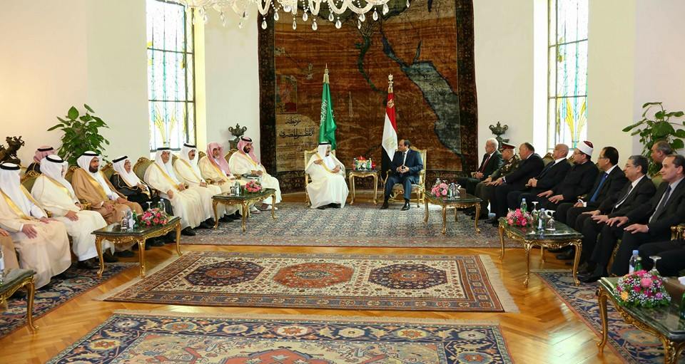 استقبل السيد الرئيس عبد الفتاح السيسي اليوم بقصر الاتحادية جلالة الملك سلمان بن عبد العزيز خادم الحرمين الشريفين ملك المملكة العربية السعودية، حيث عقد السيد الرئيس والعاهل السعودي جلسة مباحثات موسعة ضمت وفدي البلدين. وعقب انتهاء المباحثات قام السيد الرئيس بمنح جلالة الملك سلمان بن عبد العزيز قلادة النيل التي تعد أرفع وسام مصري، وذلك تقديراً للعلاقات التاريخية والوطيدة التي تجمع بين البلدين، بالإضافة إلى المواقف النبيلة التي اتخذها خادم الحرمين الشريفين إزاء مصر وشعبها.