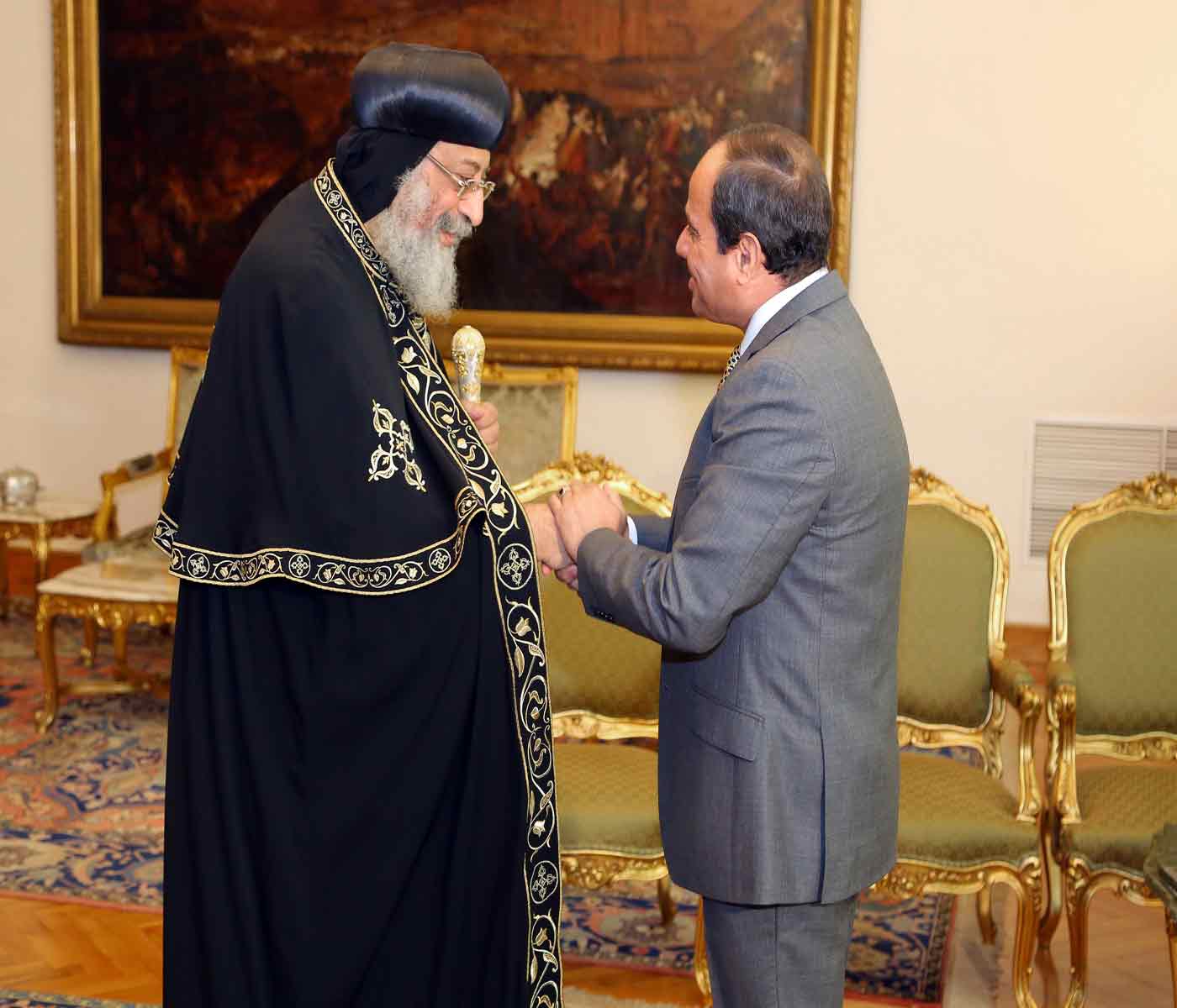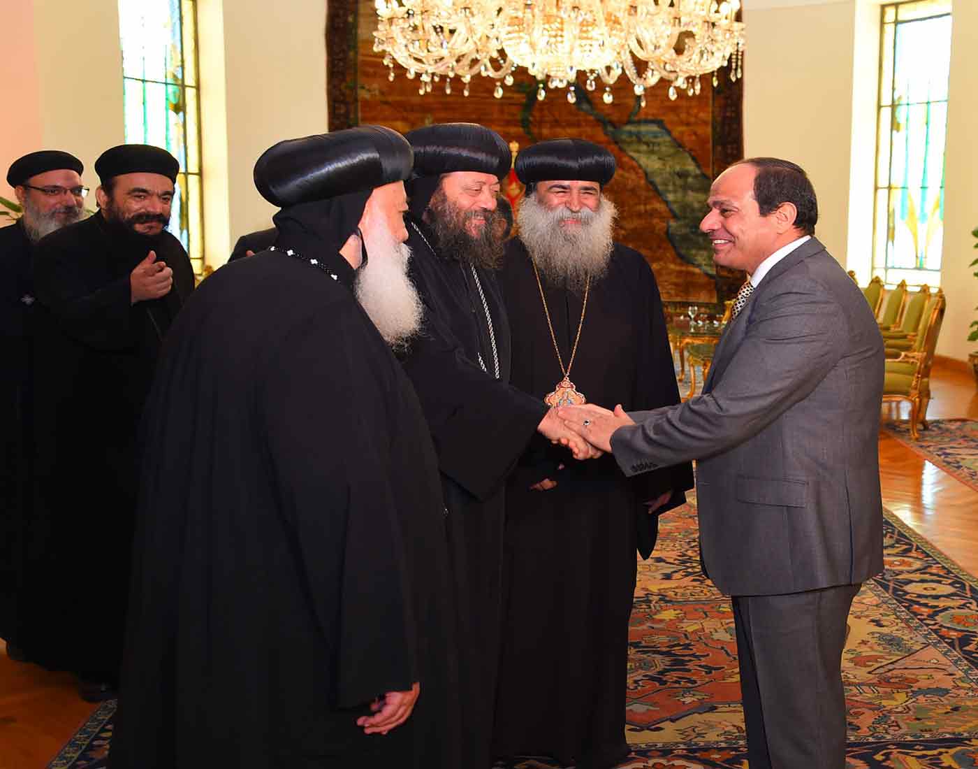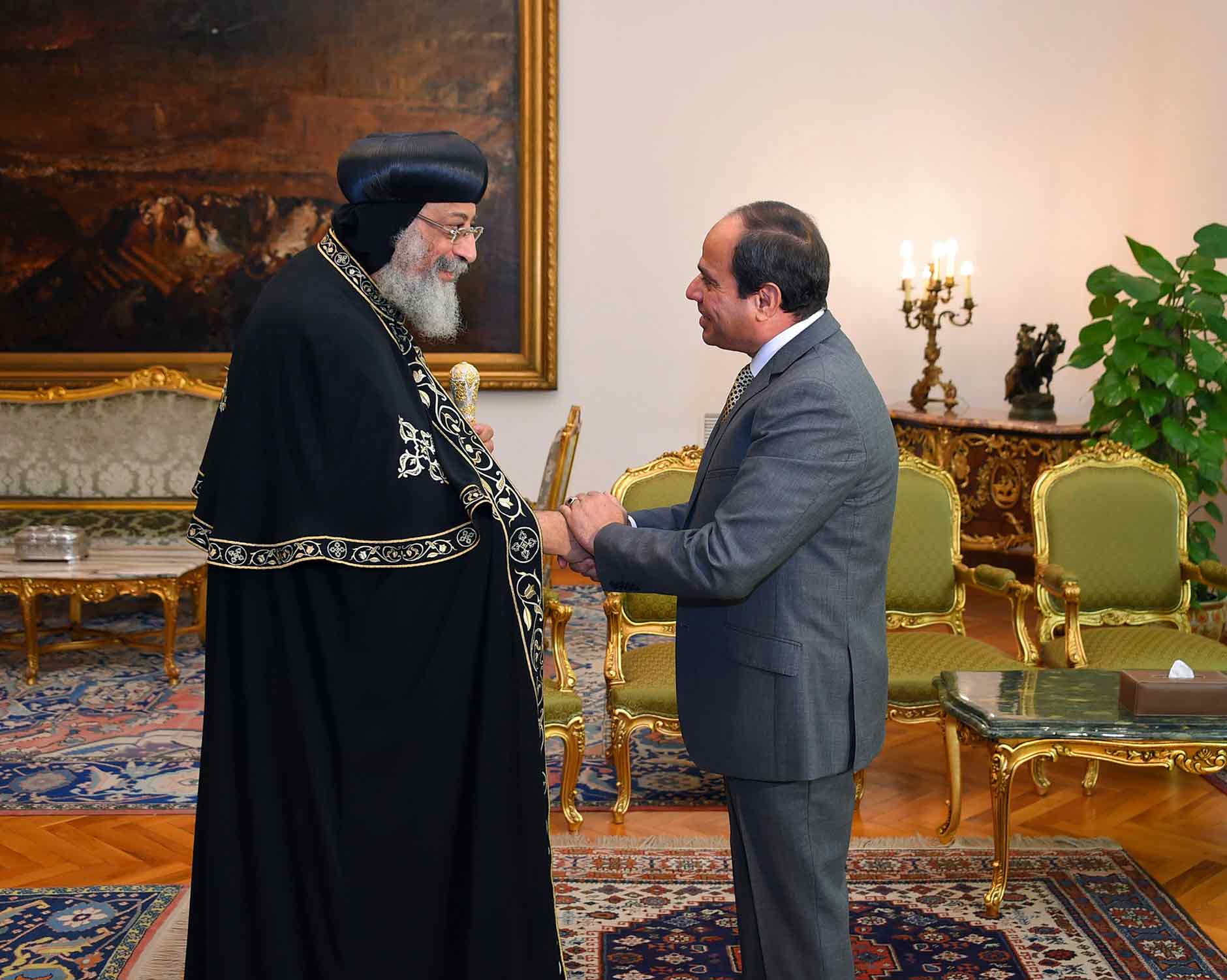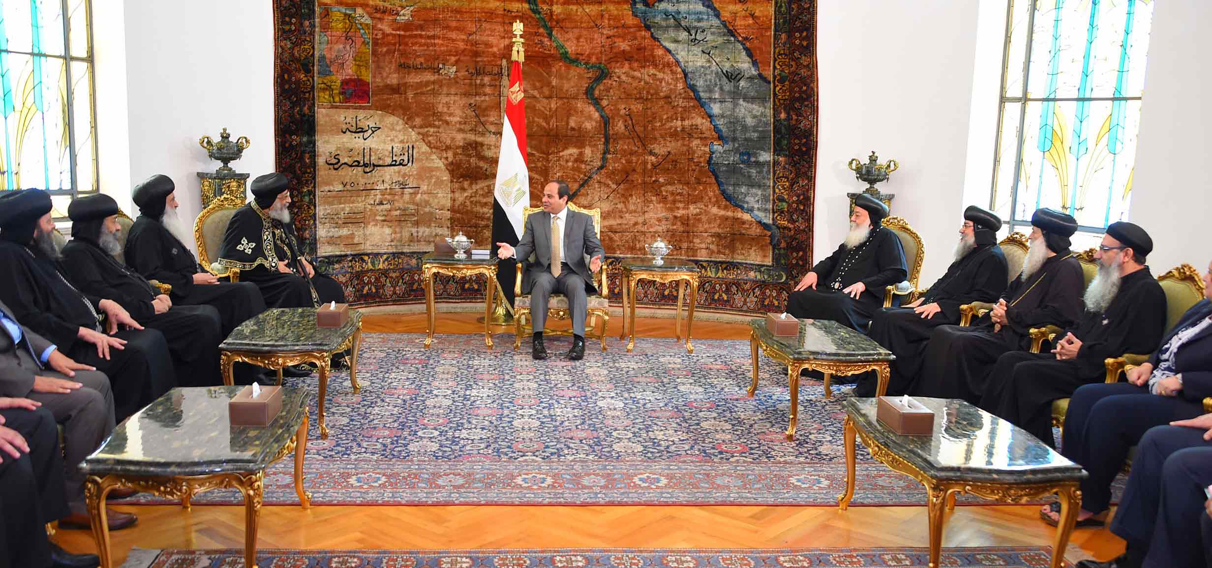 جاء ذلك خلال استقبال الرئيس اليوم الخميس لقداسة البابا تواضروس الثاني بابا الإسكندرية وبطريرك الكرازة المرقسية، وعدداً من أعضاء المجمع المقدس للكنيسة القبطية الأرثوذكسية.