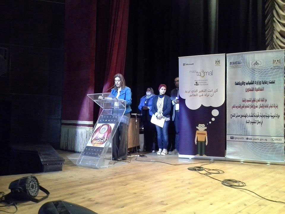 قدم الدكتور محمود حسن رئيس الإدارة المركزية للمشروعات وتدريب الشباب بوزارة الشباب والرياضة الشكر للوزير ، ولشركاء التنمية ، موضحا جهود الوزارة فى كيفية التغلب على البطالة، وجعل الشباب يسعي وراء هدف وكيفية توظيف وسائل التواصل الاجتماعي بما يفيد الشباب في حياته العلمية، مؤكداً اننا نمتلك شباب واع، كما وجه الشكر لشباب المحافظات التي يريد دائما السعي وراء هدف ناجح للاستفادة منه في كافة مناحي الحياة.