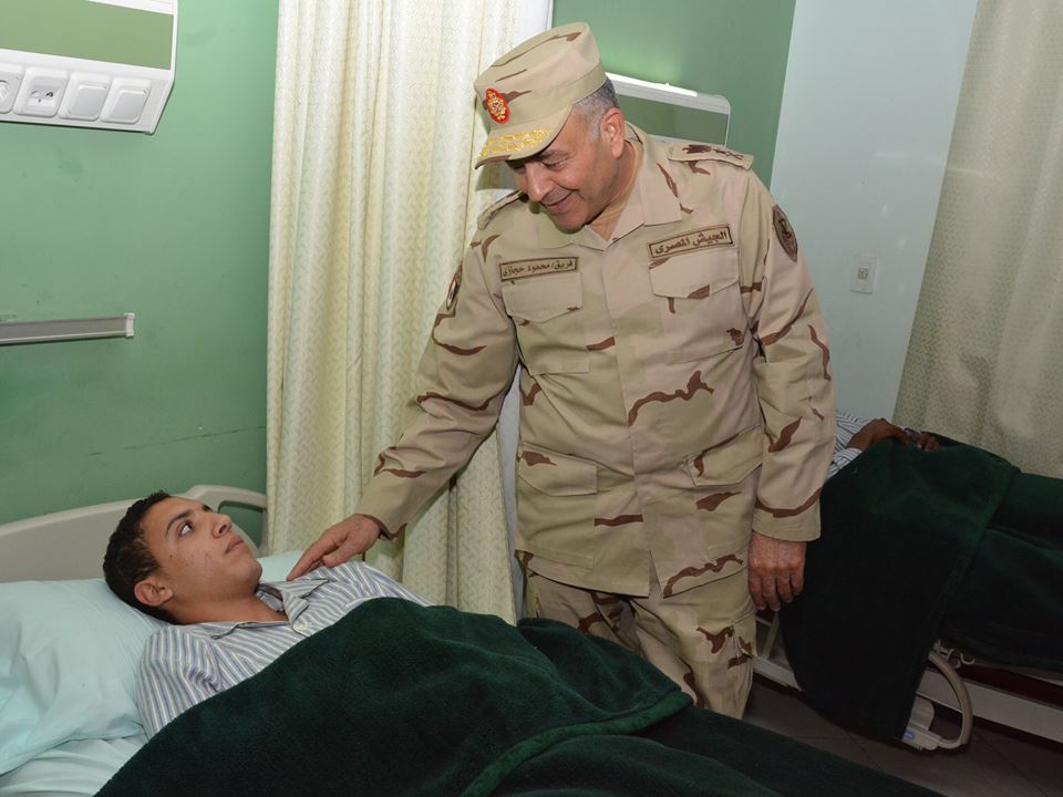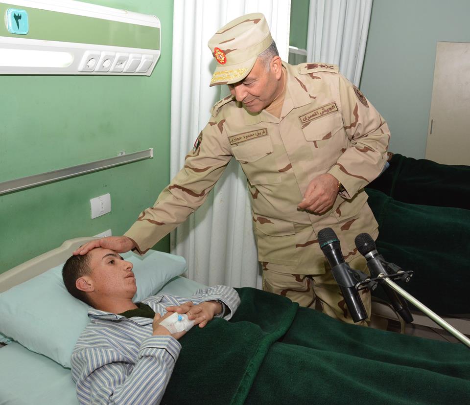 بالصور..الفريق محمود حجازى يزور عدد من مصابي الجيش بالمجمع الطبى بكوبرى القبة