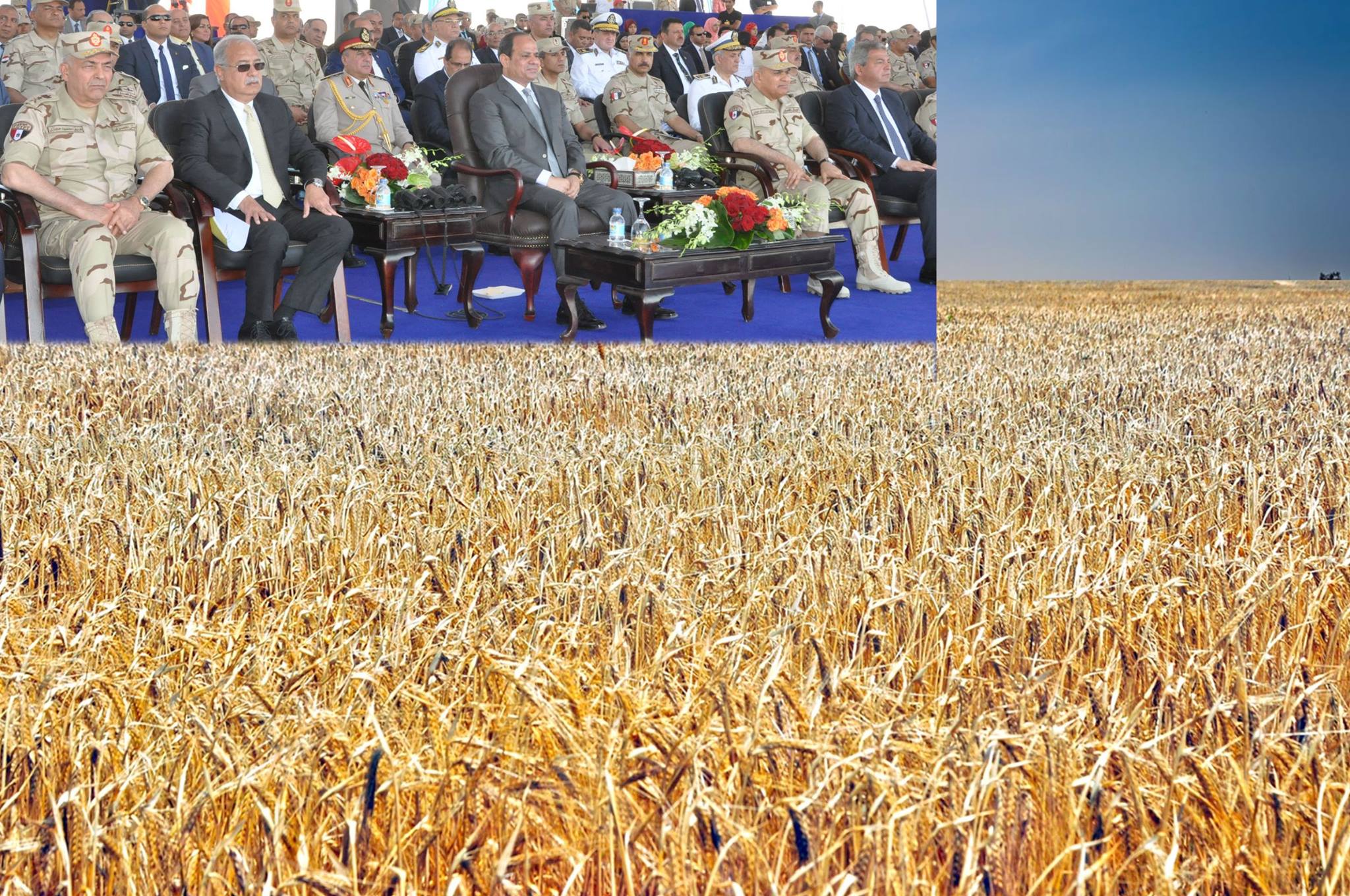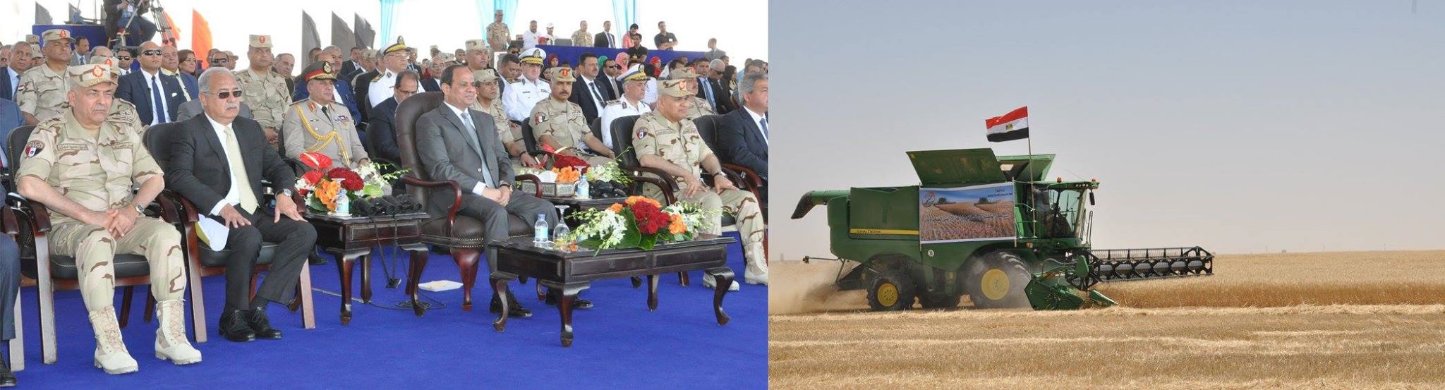 جاء ذلك إستمراراً لجهود الدولة فى التخطيط الإستراتيجى للمشروعات التنموية والخدمية العملاقة على أرض مصر شهد الرئيس / عبدالفتاح السيسى رئيس الجمهورية القائد الأعلى للقوات المسلحة مراسم الإحتفال بإفتتاح موسم الحصاد لعشرة آلاف فدان بمنطقة الفرافرة والذى يعتبر نواة للمشروع القومى لإستصلاح وتنمية مليون ونصف المليون فدان ونموذجاً للريف المصرى الجديد بما يمثل إضافة كبرى لتحقيق مخططات التنمية الشاملة وتوفير فرص العمل لملايين الشباب من أبناء الشعب المصرى .