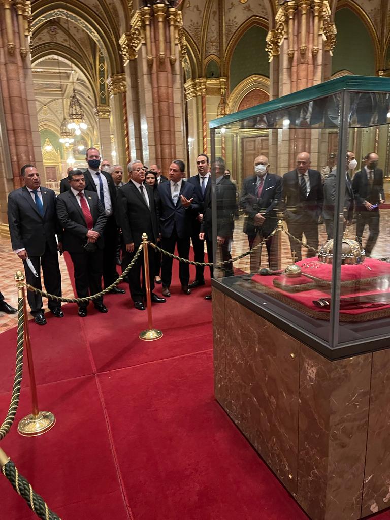 وفي نهاية اللقاء، وقع المستشار الدكتور حنفي جبالي رئيس مجلس النواب في دفتر توقيعات ضيوف الجمعية الوطنية المجرية، ثم قام السيد/ لاسلو كوفير باصطحاب سيادته والوفد البرلماني المصري المرافق في جولة تفقدية داخل البرلمان المجري