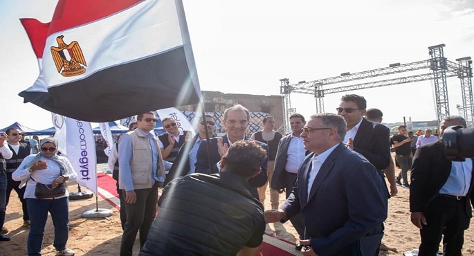 كما قام الوزير برفع العلم المصرى لحظة وصول سفينة الإنزال البحرى إلى شاطئ رأس غارب ليعلن بذلك نجاح عملية إنزال نظام الكابل البحرى الجديد Red2Med .