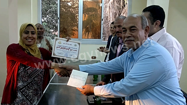 بالصور..تكريم طالبة ببني سويف محت أميتها وحصلت على 97 % بالثانوية العامة