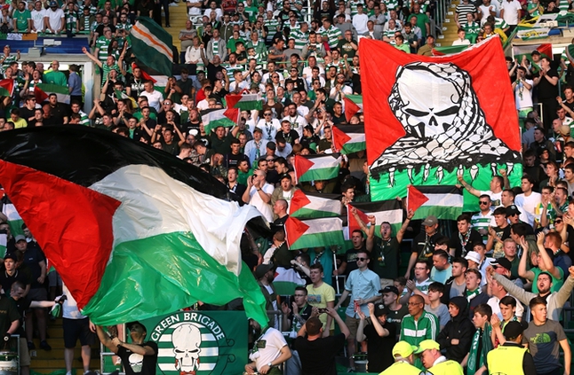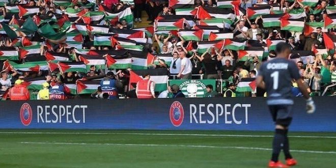 بالصور .. جماهير سيلتيك الأسكتلندي ترفع العلم الفلسطيني أمام فريق هبوعيل الإسرائيلي