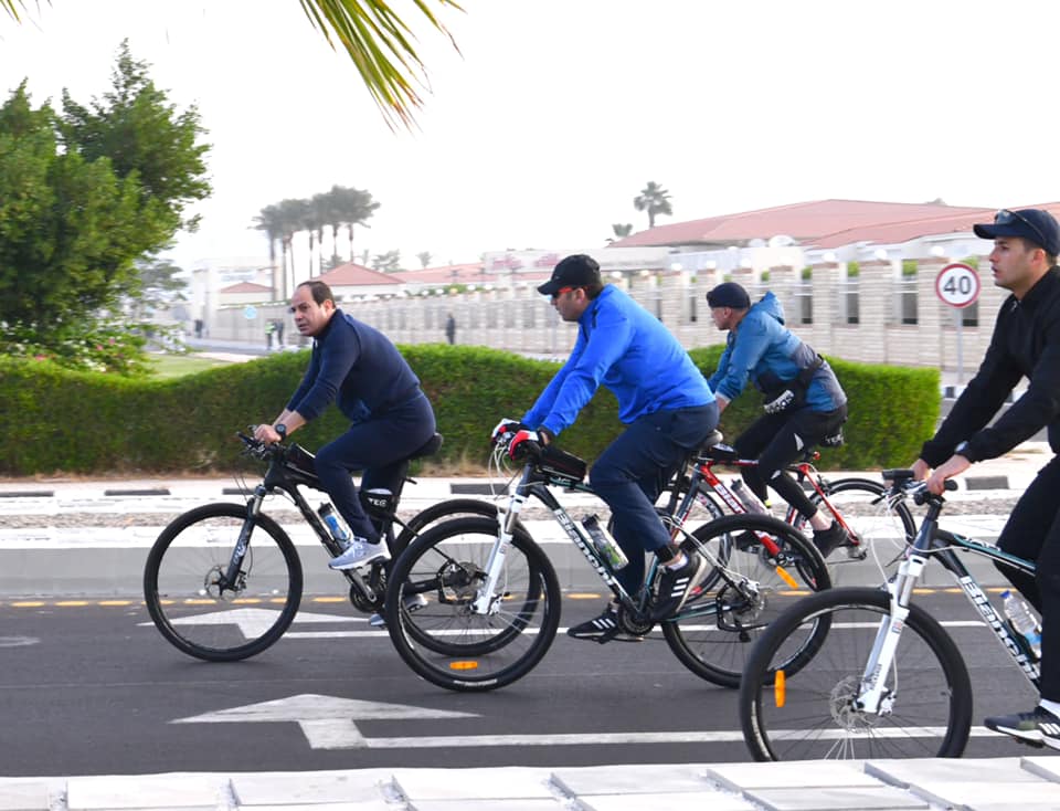 بالصور والفيديو.. جولة تفقدية للرئيس السيسى بالدراجة بمدينة شرم الشيخ