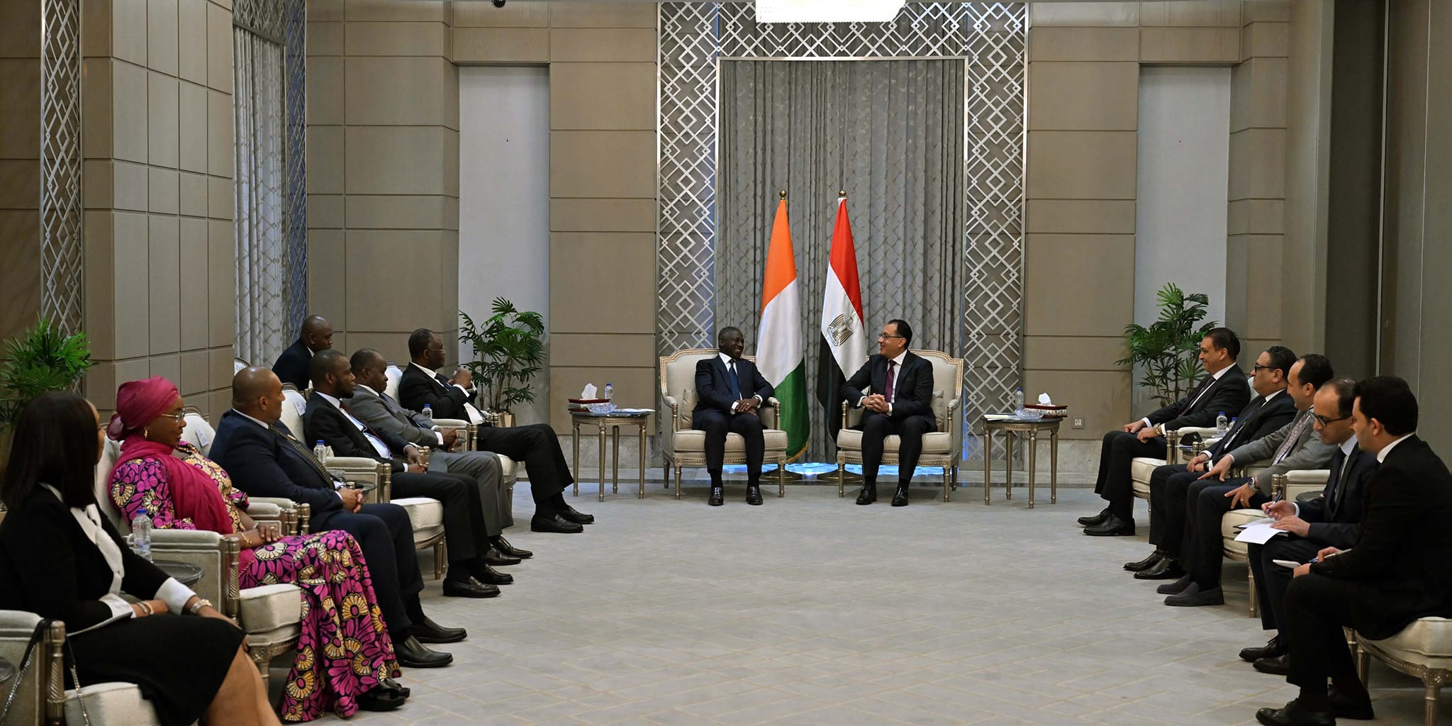 ورحّب رئيس الوزراء بأداما بيكتوغوا، في مقر الحكومة المصرية، قائلًا” أُرحب برئيس الجمعية الوطنية الإيفوارية والوفد المرافق له هنا بالمقر الجديد للحكومة في العاصمة الإدارية الذي انتقلنا إليه منذ نحو عام، ومن المُقرر انتقال البرلمان أيضًا في غضون أشهر قليلة”.