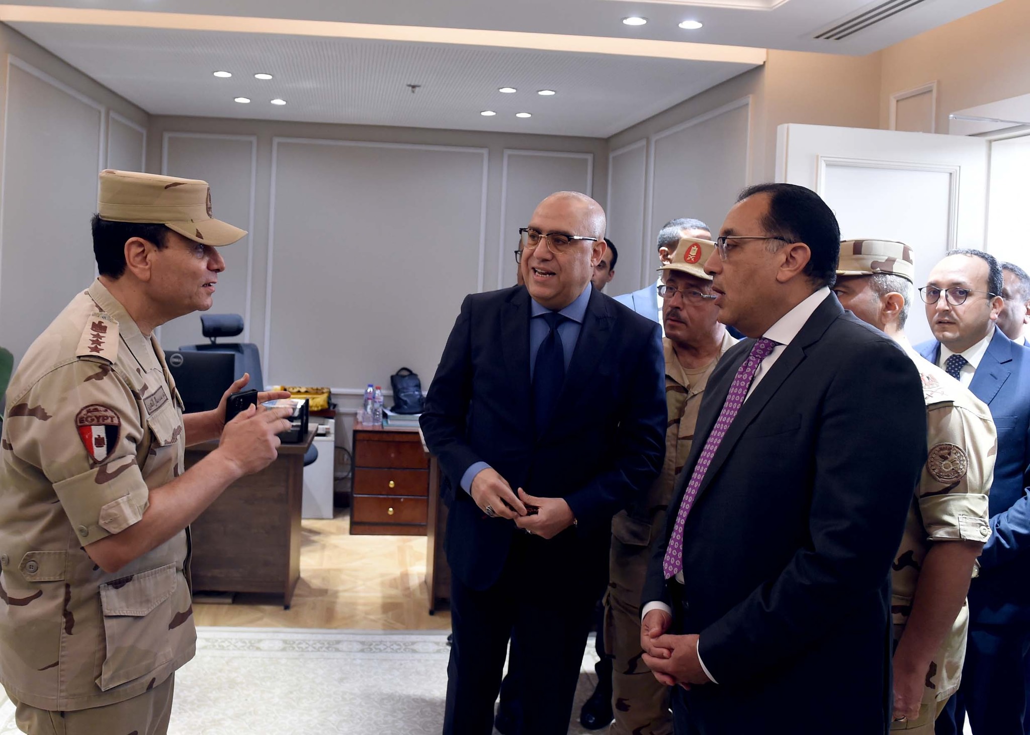 عقب انتهائه من تفقد مبنى مديرية أمن العاصمة الإدارية الجديدة، توجه مصطفى مدبولي، رئيس مجلس الوزراء، ومرافقوه لزيارة مقر وزارة الإسكان بالحي الحكومي اليوم الثلاثاء، حيث كان في استقباله الدكتور عاصم الجزار، وزير الإسكان والمرافق والمجتمعات العمرانية، واللواء محمد عصام، مساعد وزير الإسكان والمشرف على مكتب الوزير.
