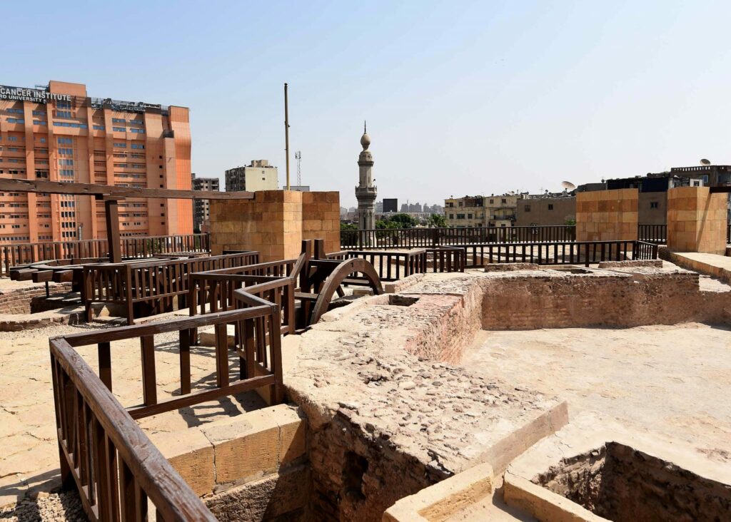 وأضاف الوزير أنه لم يبقَ من مباني الحصن سوى الباب القبلي يكتنفه برجان كبيران، وقد بني فوق أحد البرجين الجزء القبلي منه الكنيسة المعلقة، كما بُني فوق البرج الذي عند مدخل المتحف القبلي كنيسة مار جرجس الروماني للروم الأرثوذكس (الملكيين)، أما باقي الحصن وعلى باقي السور في بعض أجزائه من الجهة الشرقية والقبلية والغربية بنيت الكنائس – المعلقة – وأبو سرجة – ومار جرجس – والعذراء قصرية الريحان – ودير مار جرجس للراهبات – والست بربارة – ومعبد لليهود.