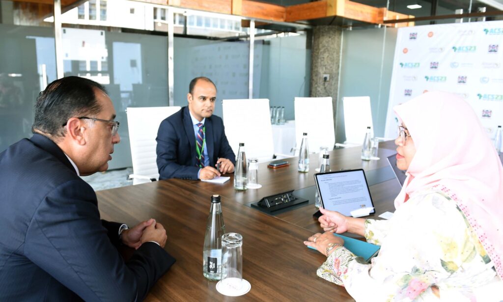 عقد مصطفى مدبولي، رئيس مجلس الوزراء، اليوم الثلاثاء، لقاء مع ميمونة محمد شريف، مساعد الأمين العام للأمم المتحدة، المدير التنفيذي لبرنامج الأمم المتحدة للمستوطنات البشرية (هابيتات)، على هامش مشاركته نيابة عن الرئيس عبد الفتاح السيسى في اجتماعات قمة أفريقيا للمناخ التي تستضيفها كينيا يومي 5 و 6 سبتمبر الجاري.