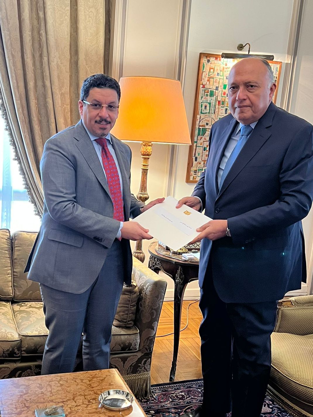وقال المتحدث الرسمي ومدير إدارة الدبلوماسية العامة بوزارة الخارجية السفير أحمد أبو زيد، في بيان، إن وزير خارجية اليمن سلم الوزير شكري رسالة خطية من رشاد العليمي رئيس مجلس القيادة الرئاسي اليمني إلى الرئيس عبد الفتاح السيسي حول العلاقات الثنائية بين البلدين الشقيقين وسبل مواصلة تعزيزها على شتى المستويات.