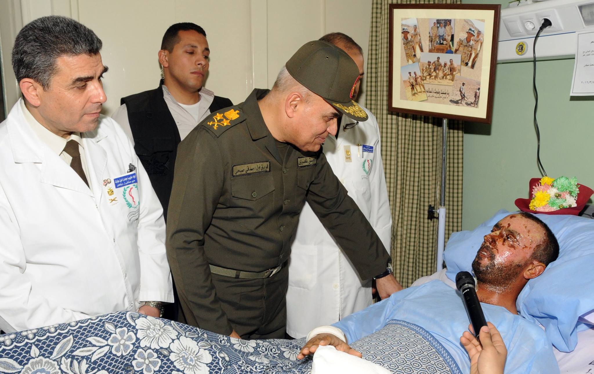 بالصور..صبحى يزور أبطال القوات المسلحة مصابى المواجهات مع الإرهاب