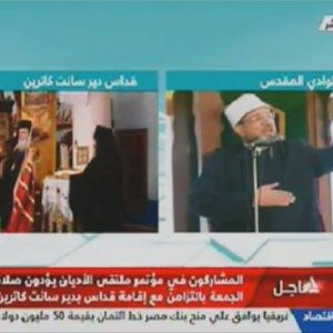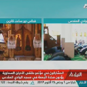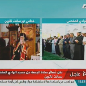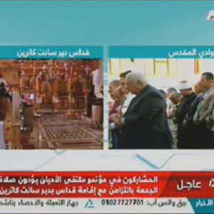 يؤدي المشاركون فى ختام مؤتمر ملتقى الاديان بشرم الشيخ صلاة الجمعة من مسجد الوادي المقدس بمدينة سانت كاترين ، بالتزامن مع قداس بكنيسة سانت كاترين للروم الارثوذوكس .