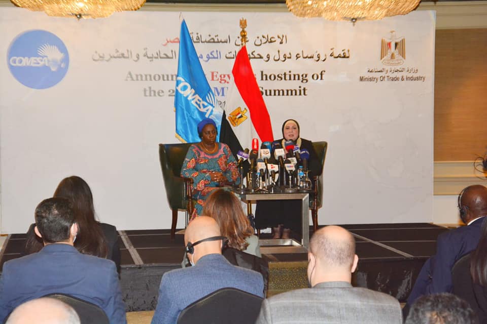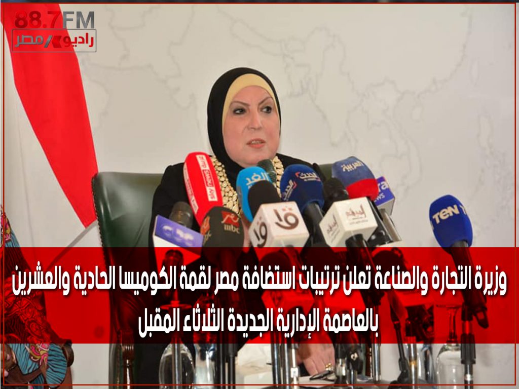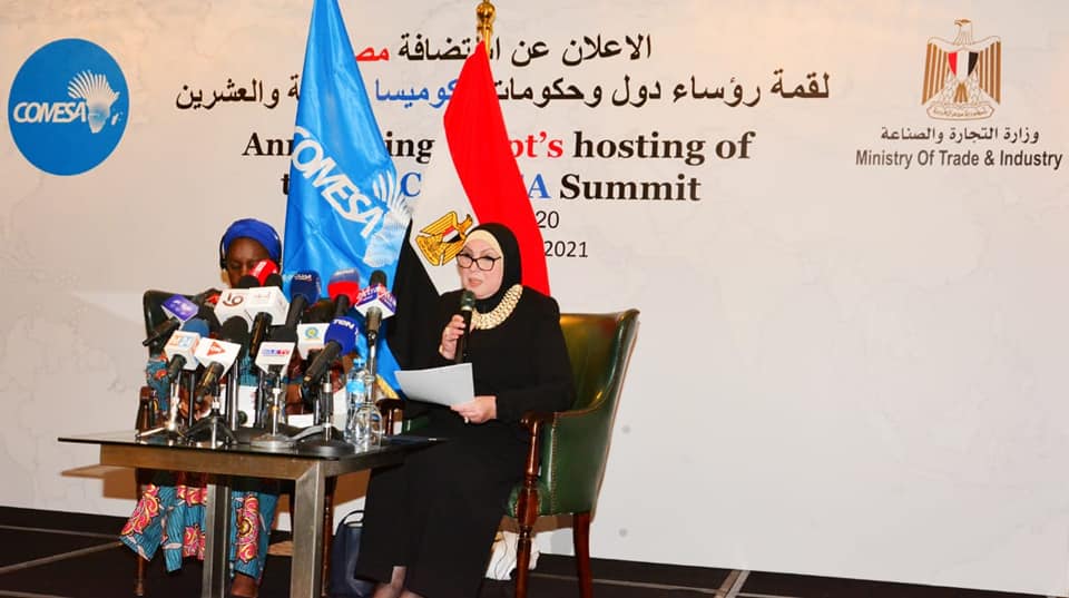 في مؤتمر صحفي مشترك مع سكرتارية الكوميساوزيرة التجارة والصناعة تعلن ترتيبات استضافة مصر لقمة الكوميسا الحادية والعشرين بالعاصمة الإدارية الجديدة الثلاثاء المقبل