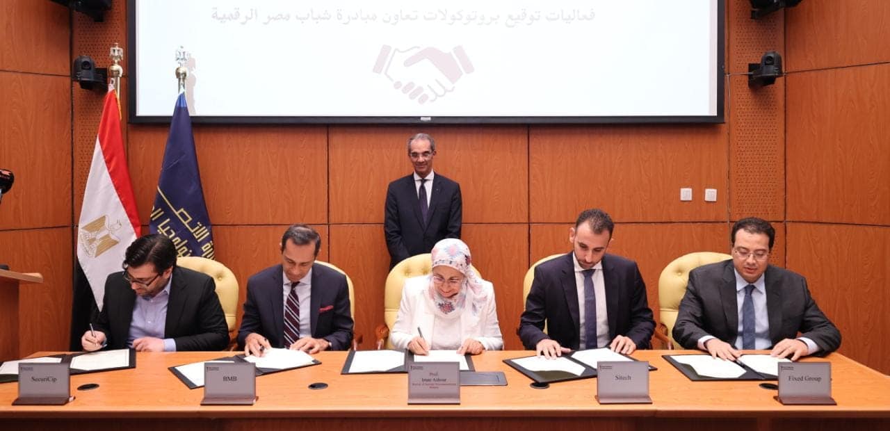 ووقع بروتوكولات التعاون من المعهد القومى للاتصالات ايمان عاشور رئيسة المعهد مع كل من شركات الاتصالات الأربعة العاملة فى مصر وهى: الشركة المصرية للاتصالات، وشركة فودافون، وشركة أورانج، وشركة اتصالات مصر، وكذلك كبرى الشركات العاملة فى مجال الإلكترونيات والأنظمة المدمجة وهى شركات فاليو، وافيلابس، وسايتك، والفا الكترونيكس. وكذلك كبرى الشركات العاملة فى مجالات الشبكات والأمن السيبرانى والذكاء الاصطناعى والحوسبة السحابية وهى شركات: هواوى، وجلوبال براند، وفيكسيد جروب، وسيكيوريسيب، وزيرو اند وان، وأى تى فيجينارى، وهيتس سوليوشينز، وتك هب، وبى أم بي، وديجيتايز، وفيجينيرينج، والنظم الهندسية، والروضة، ومنصة الحريفة للعمل الحر.
