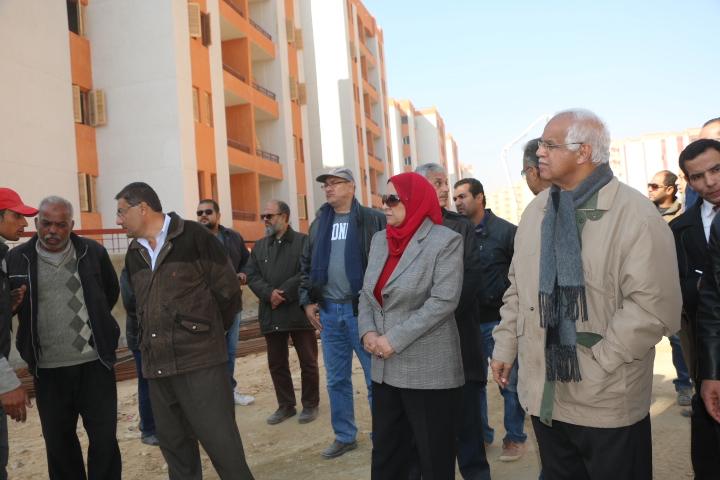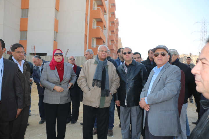 وأشار المحافظ بأن المشروع مقام على مساحة 63 فدان تقريباَ ويضم 6200 وحدة سكنية (173 عمارة ) بخلاف استخدام عدد من الأدوار الأرضية فى إقامة محلات ودور حضانة ومراكز صحية وخدمات اخرى تم الانتهاء من إقامتها بنسبة 95% ، كما تم الانتهاء من اعمال توصيل شبكات المياه والصرف الصحى بنسبة 80% والكهرباء العامة بنسبة 60% ، وجارى العمل حالياَ على قدم وساق للانتهاء من اعمال رصف الطرق وإنشاء الأرصفة والتى بلغت نسبة التنفيذ بها حوالى 50%.